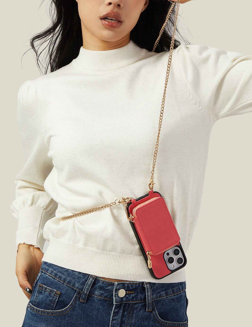 Slim Metal Chain- Magnetic Crossbody Phone Case with Card Holder