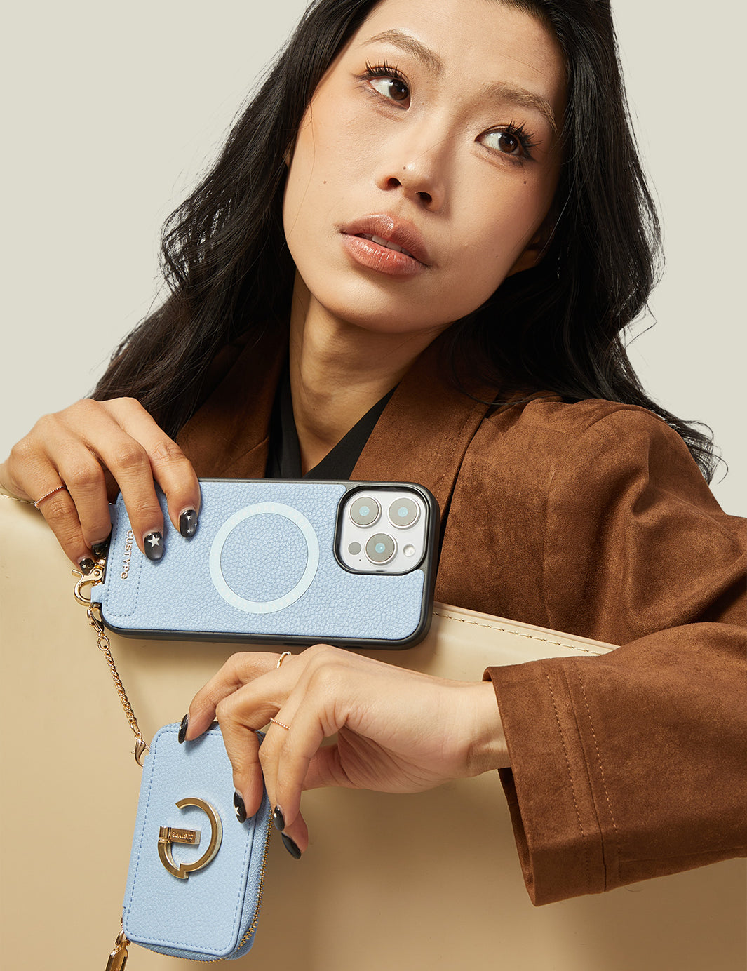 Lunar Silver Series- Premium Crossbody Magsafe Phone Case with Removable Wallet & Round Pouch