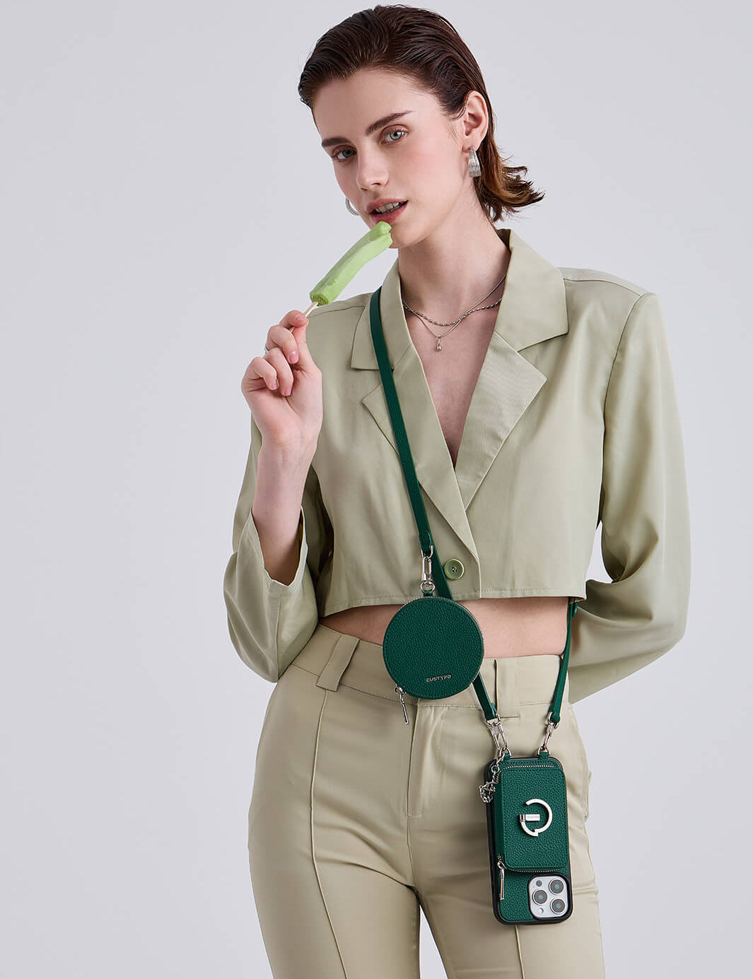 Original Design Set- Detachable Wireless Charging Crossbody Wallet Phone Case Round Pouch Set