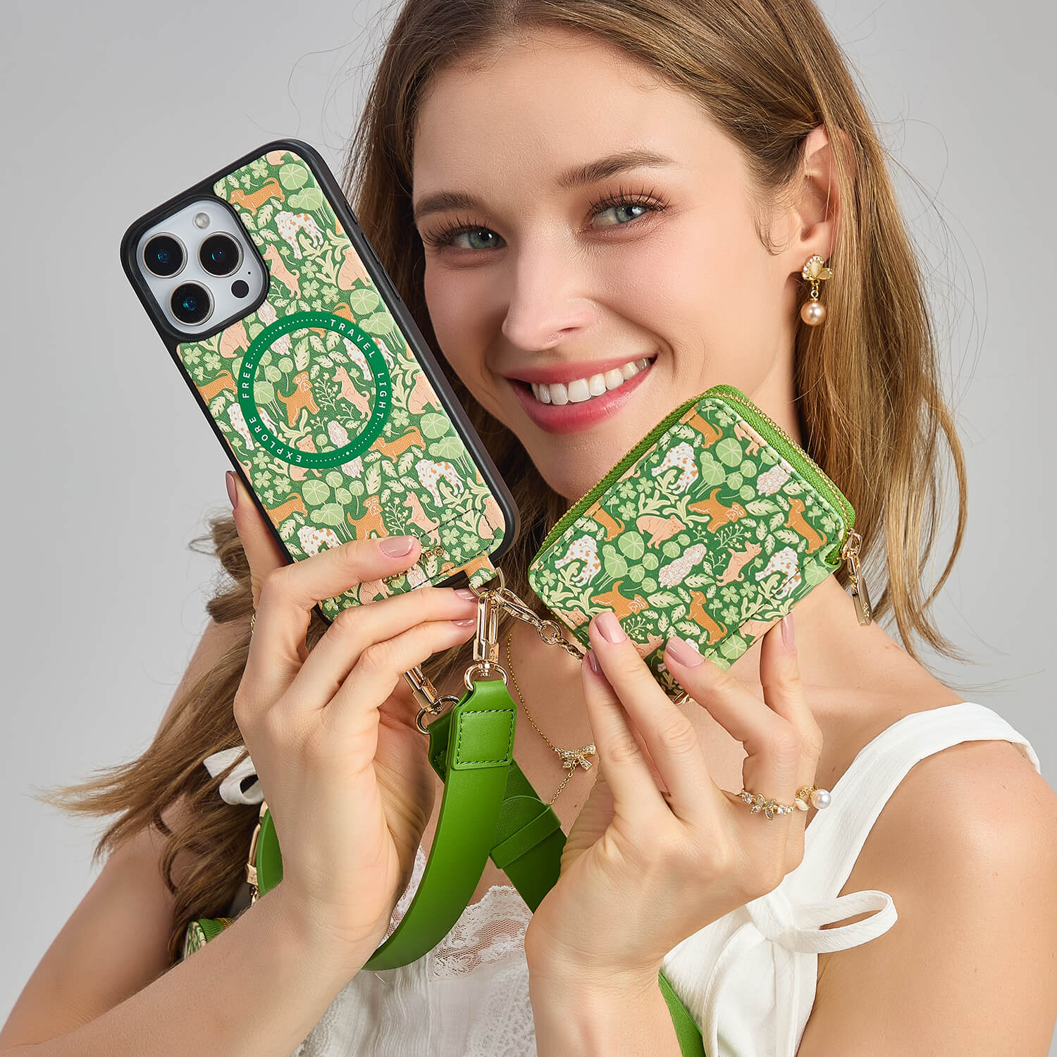 リディア・エレンがデザインした、取り外し可能なクロスボディウォレットタイプのスマホケースセットをご覧ください。犬好き、猫好きの方にぴったりのユニークな柄が特徴です。春の暖かさを感じさせる、温かみのあるデザインは、愛犬・愛猫を称え、季節を問わず毎日を楽しく彩ります。