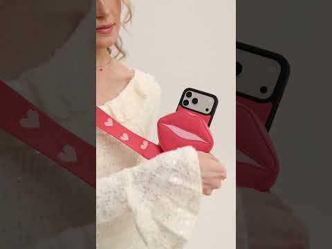 - リップ型ポーチにリップグロス、リップバーム、口紅、その他の小物をスタイリッシュに収納。