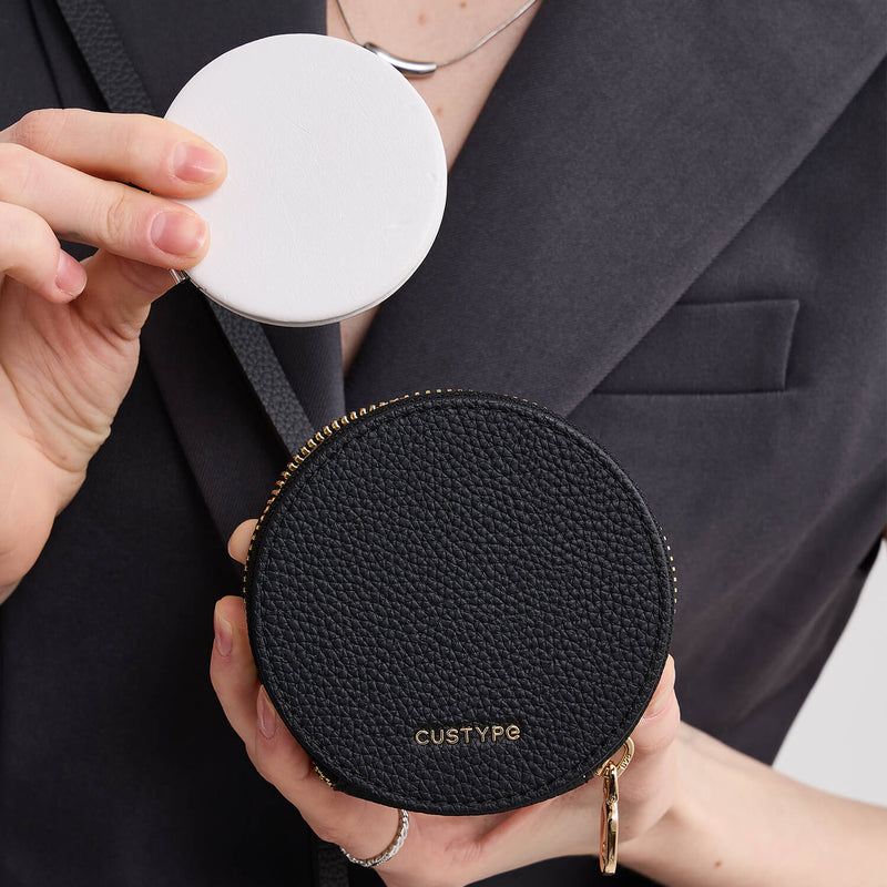 - ラウンドポーチは、AirPodsやリップスティック、パウダーなどの日用品を収納できます。