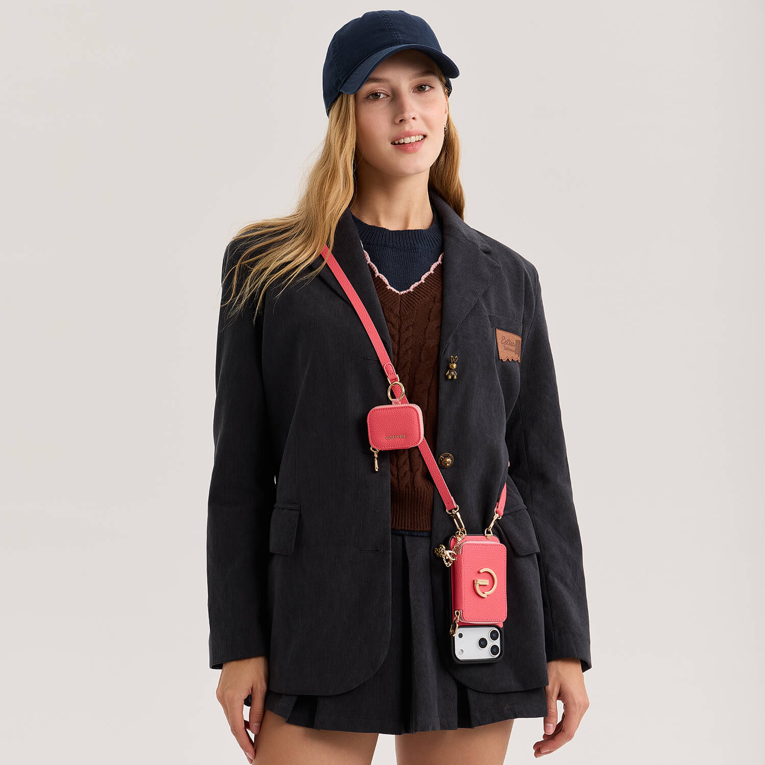このオリジナルデザインの携帯電話ケースセットで、外出先でもスタイルを高めましょう。 このセットには、取り外し可能なスタイリッシュなマグネット式ウォレットポーチが付いたミニポーチが付いています。 ミニポーチは、AirPodや小物をさらに収納できるスペースを提供します。 ショルダーストラップとリストストラップが付属しており、多目的に持ち運びできます。 鮮やかな色の組み合わせがファッション感をプラスします。 機能性とスタイルを兼ね備えた実用的でスタイリッシュなセットで、携帯電話のアクセサリをアップグレードしましょう。