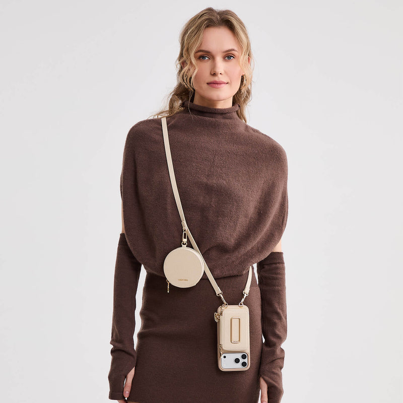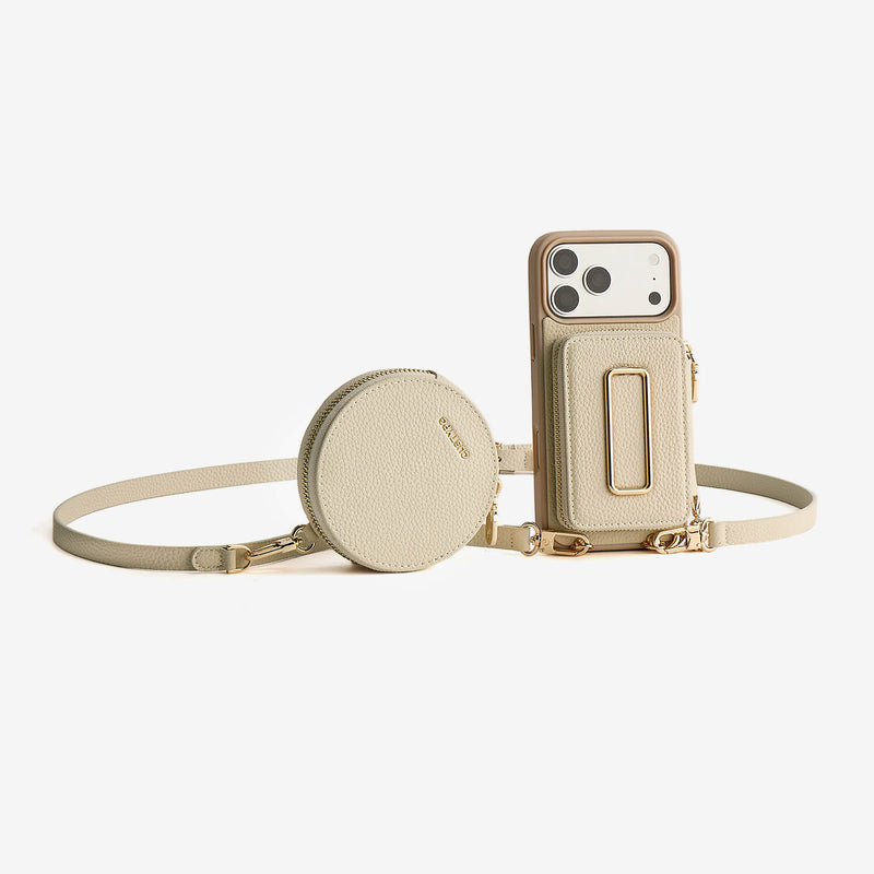 オリジナルデザインセット - 取り外し可能なワイヤレス充電クロスボディスクエアスタンドウォレット電話ケースラウンドポーチセット