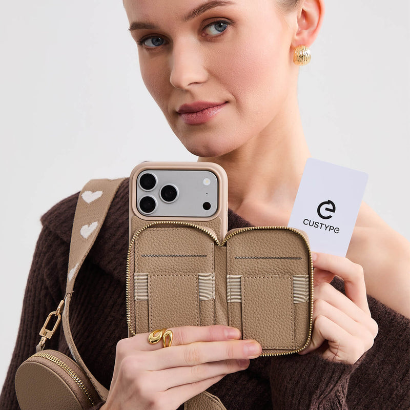 • Custypeは、様々なニーズに合わせて、様々なタイプの携帯ストラップをご用意しています。調節可能なクロスボディストラップ、ショートリストストラップ、ストラップスタイルのストラップ、取り外し可能なウォレットストラップやポーチストラップなどです。それぞれのストラップは、しっかりとした固定感、快適性、そして利便性を考慮して設計されており、カードや鍵などの必需品を手の届くところに置いておきながら、携帯電話をハンズフリーで持ち運ぶことができます。