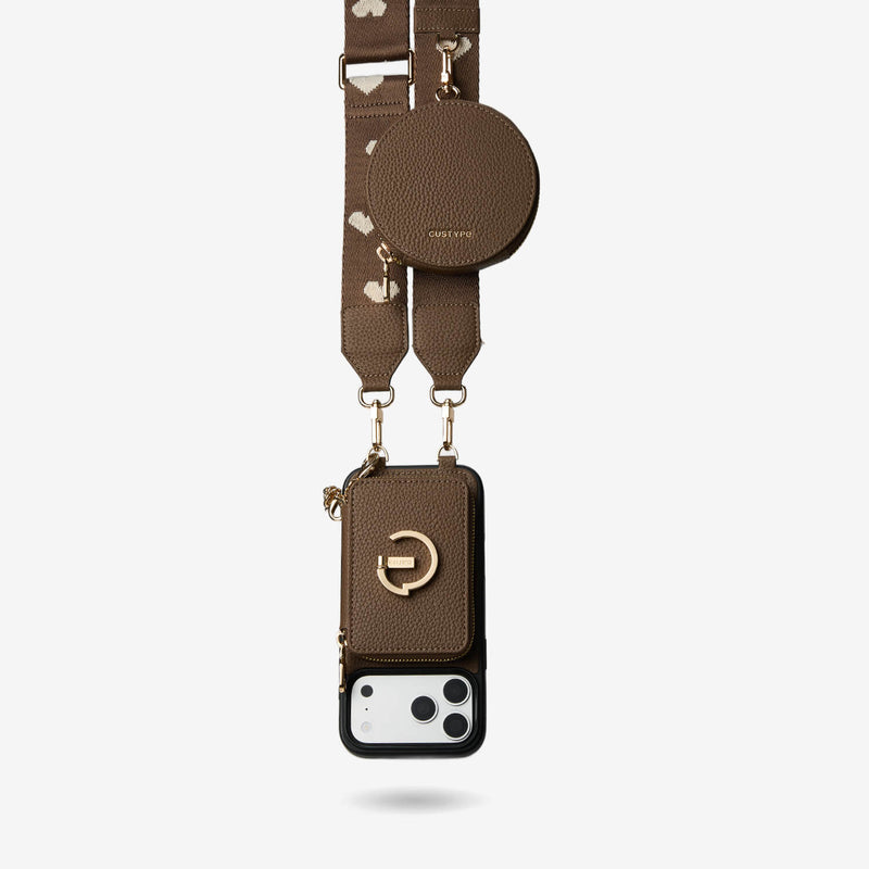 オリジナルデザインセット - ワイヤレス充電ウェビングクロスボディ電話ケースラウンドポーチセット - iPhone 17