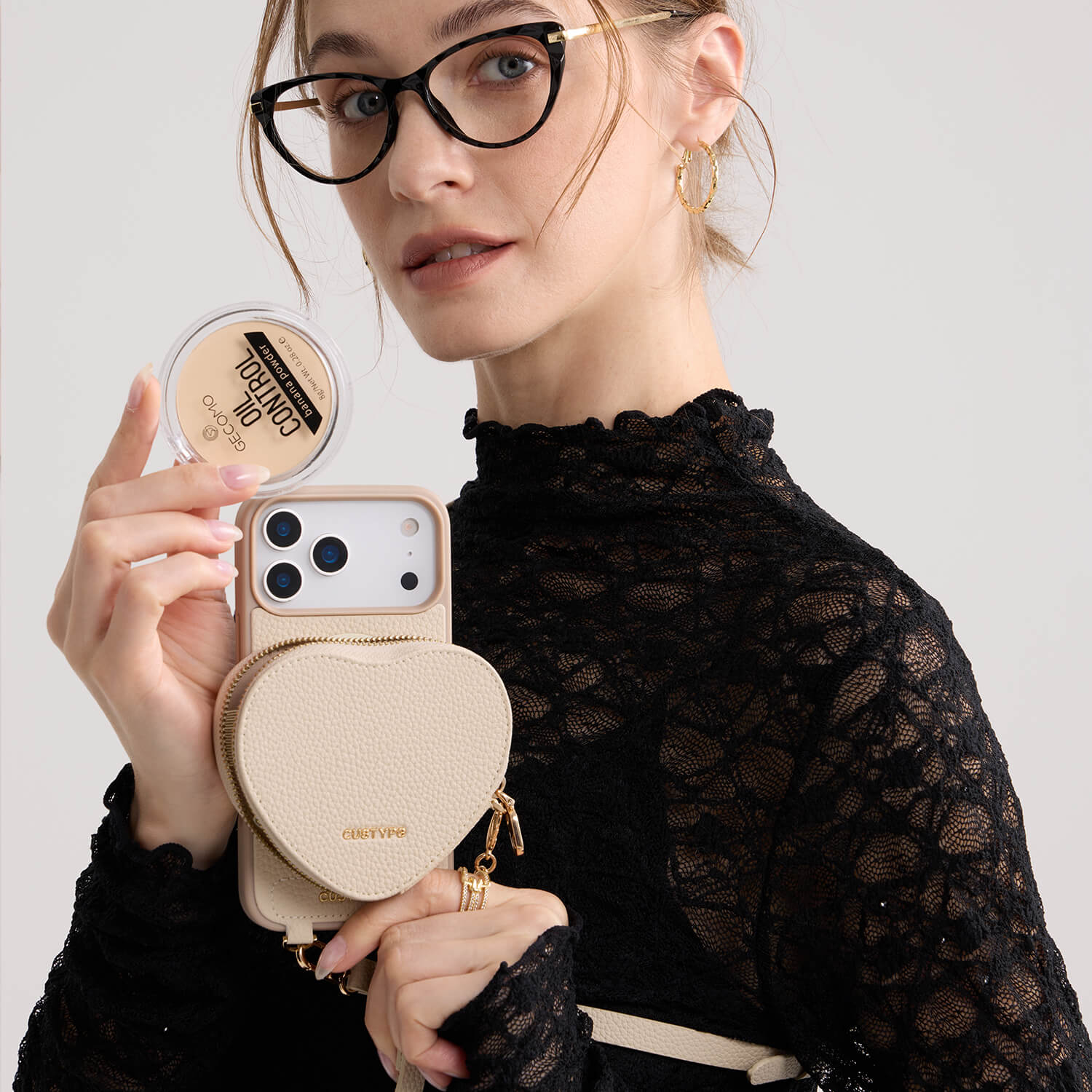 モランディグレースキット – クロスボディストラップ&ハートポーチ付きフォンケース