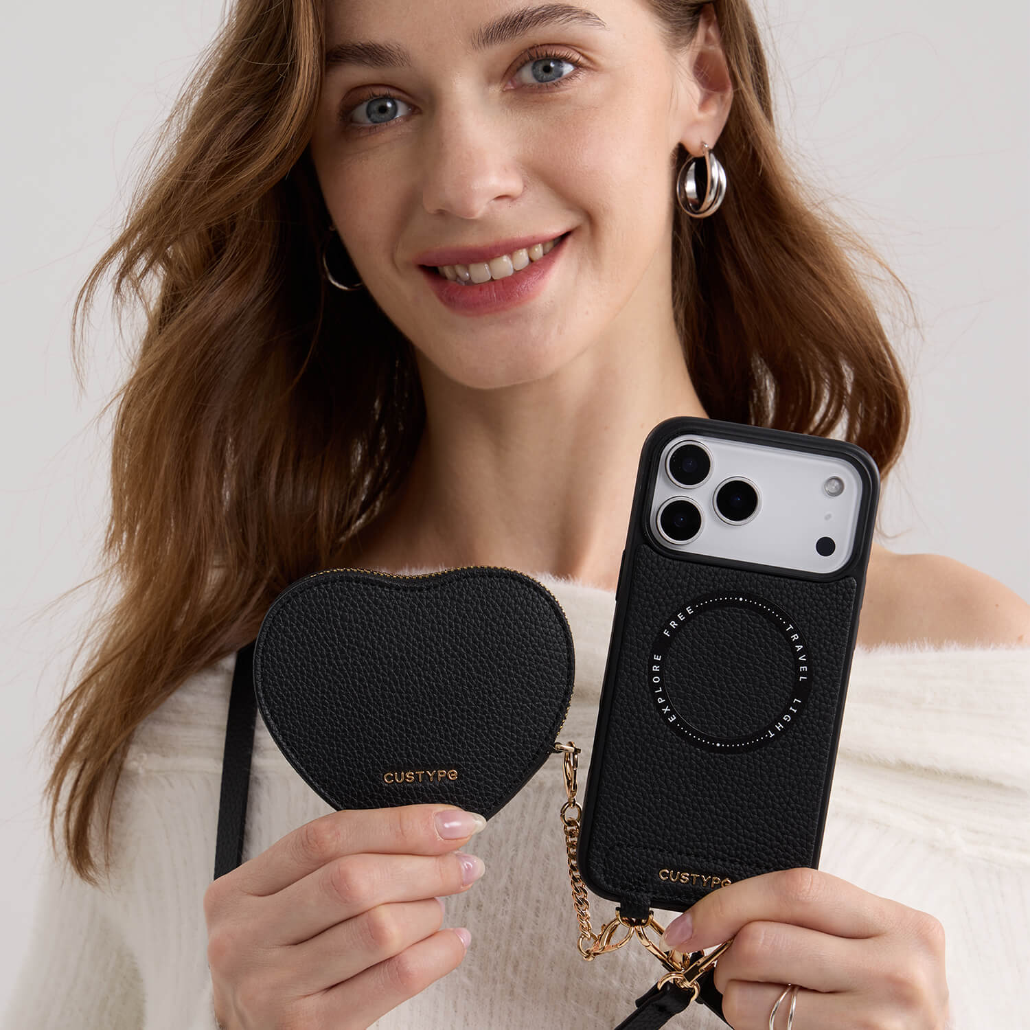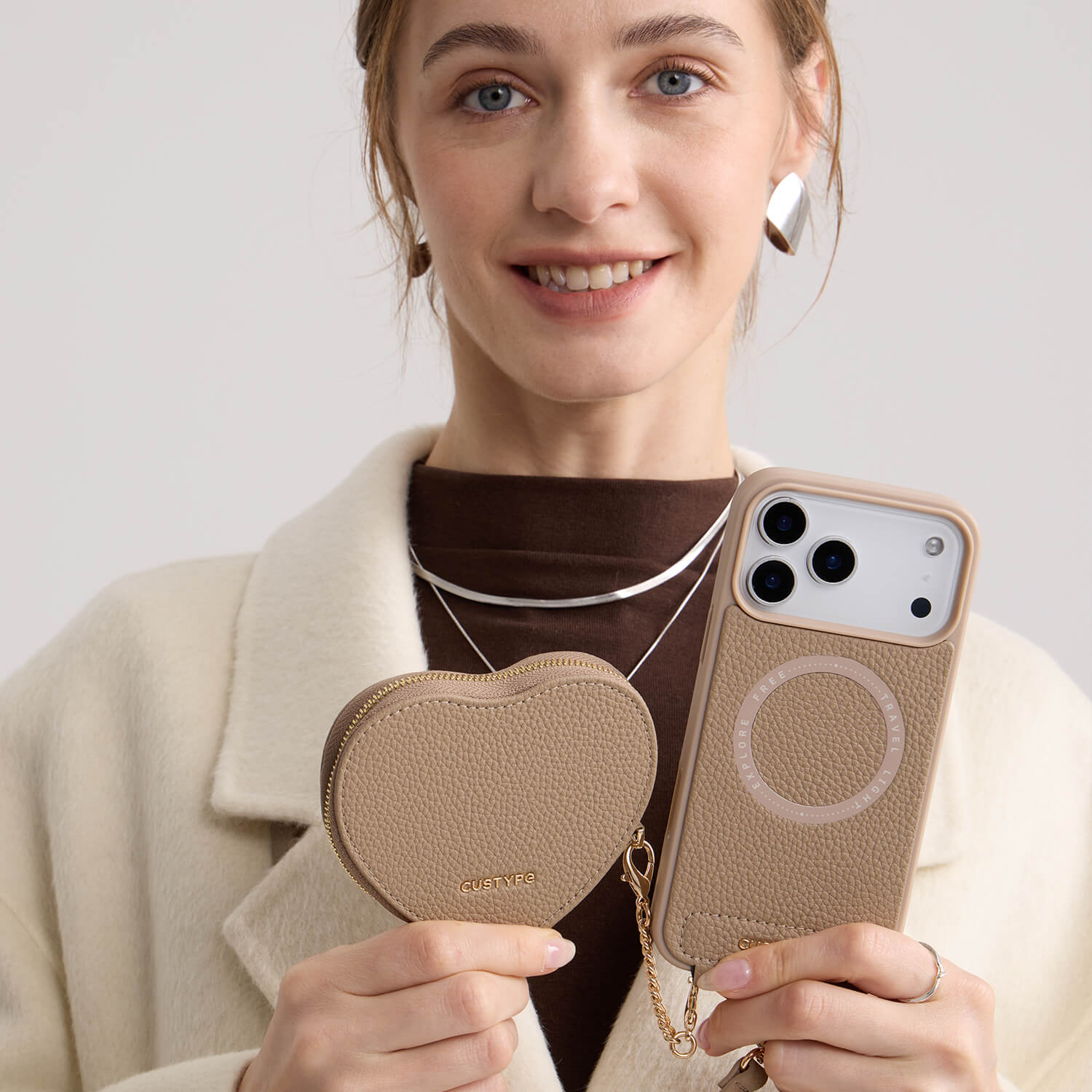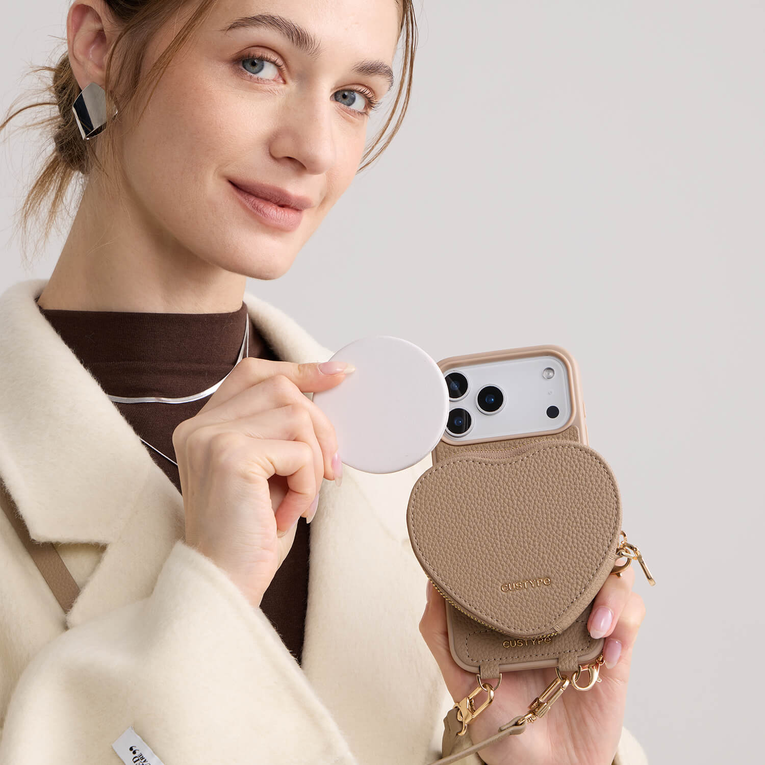 必要なものがすべてひとつに収まる日は、何だか気分も楽になります。このクロスボディiPhoneケースは手を自由に使える一方で、コインポーチやマグネット付きハートポーチが小さな必需品をしっかり収納します。柔らかなモランディトーンはどんなコーディネートにも自然に馴染み、ワイヤレス充電対応で一日中のルーティンがよりスムーズに。どこへ行く日でも、スタイリッシュかつ便利にお使いいただけます。
