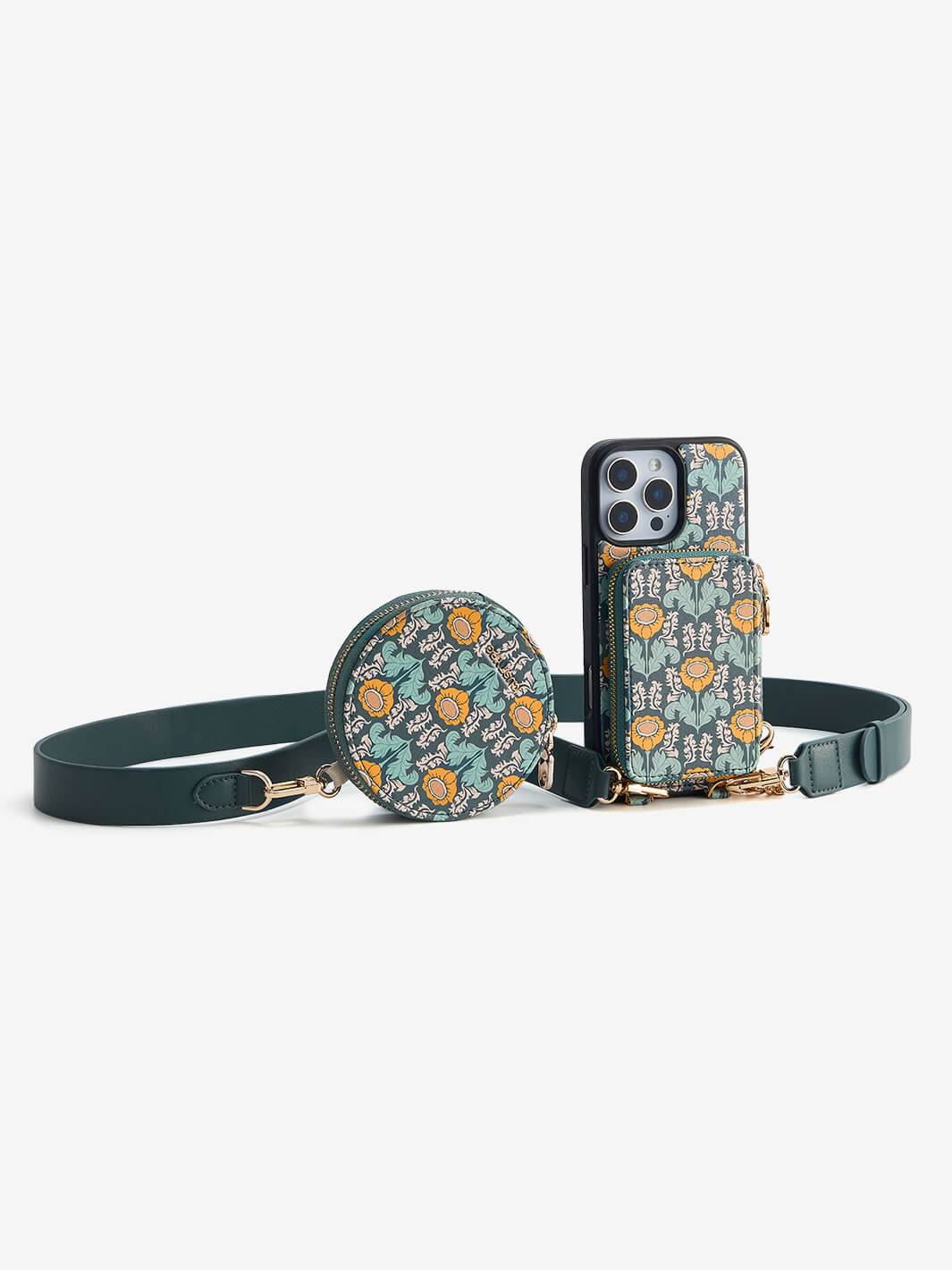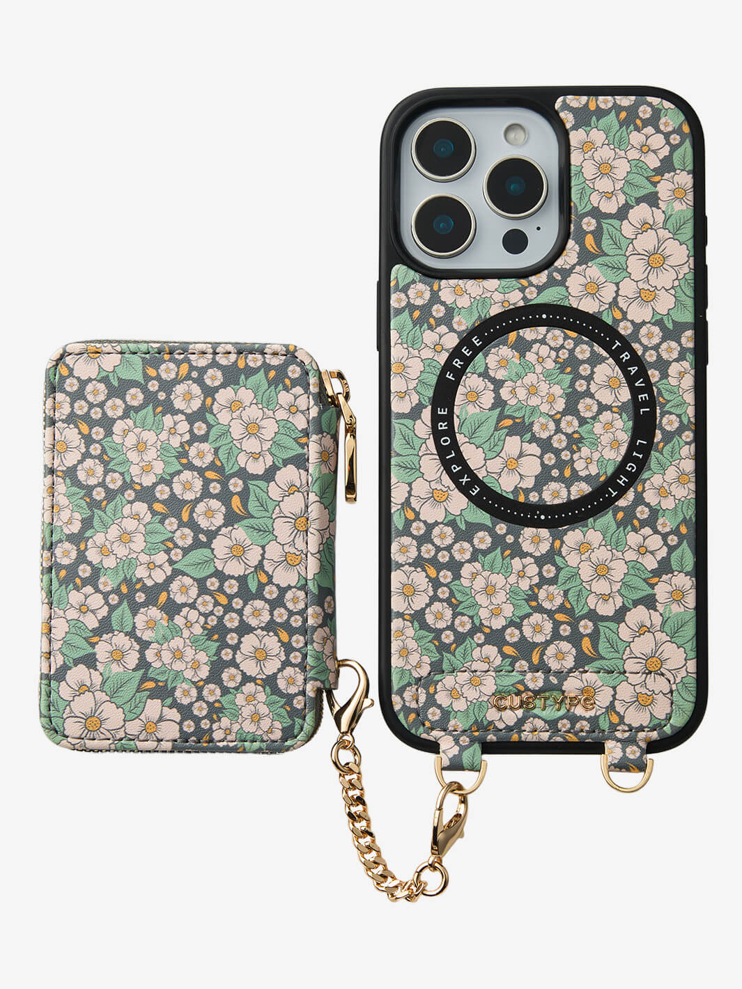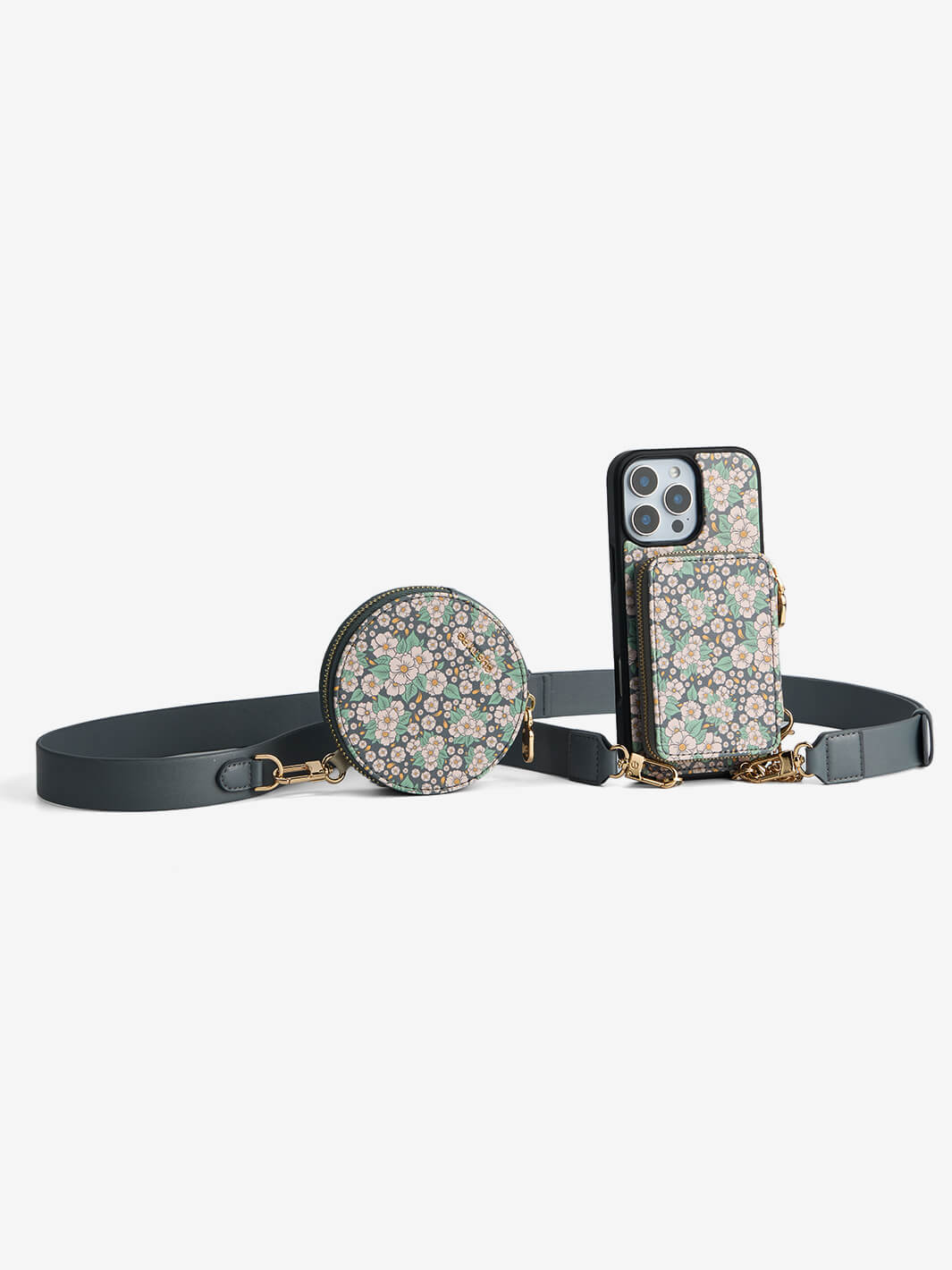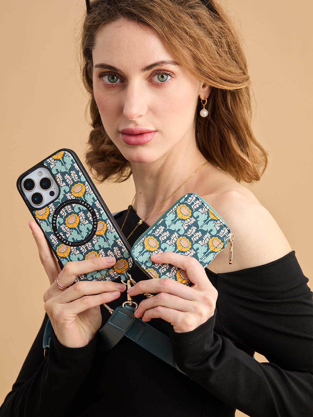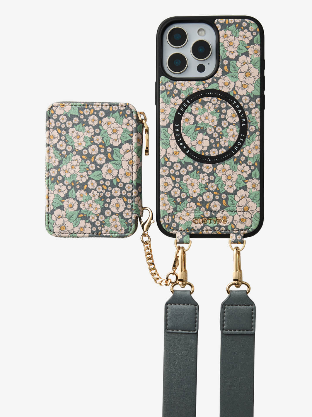 サラ・トラビとのコラボレーションでデザインされたこの限定セットは、自然からインスピレーションを得たユニークなパターンが特徴です。洗練されたMagSafe対応のスマートフォンケース、必需品を収納できるシックなラウンドポーチ、取り外し可能なウォレット、便利なストラップがセットになっており、機能性と爽やかな自然の美しさが融合し、毎日の冒険にぴったりです。