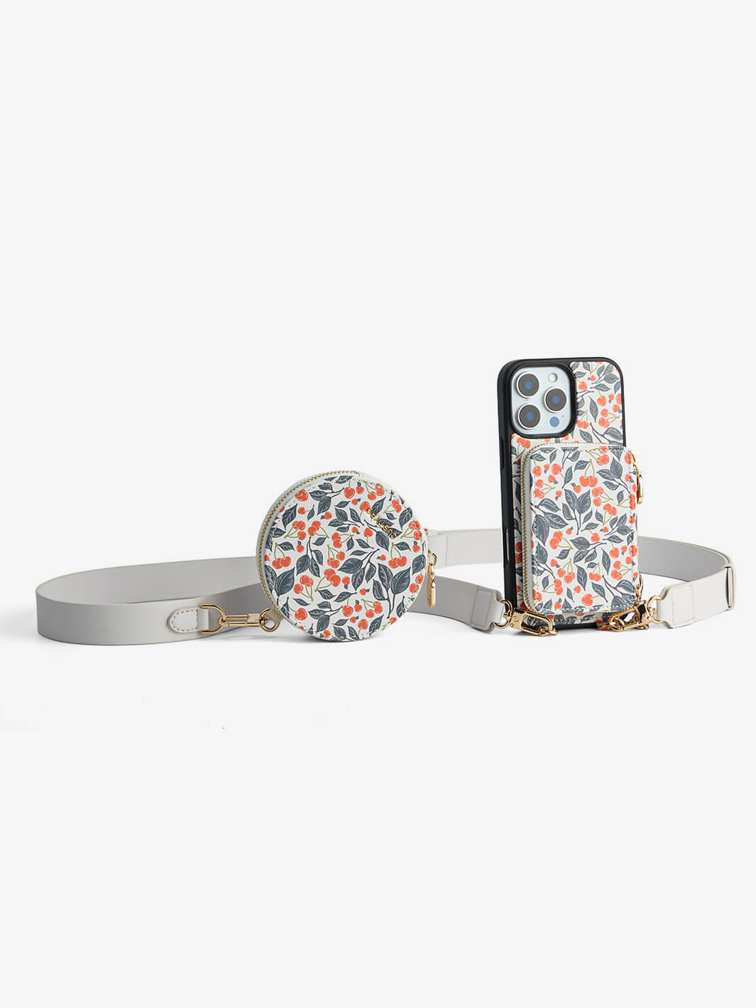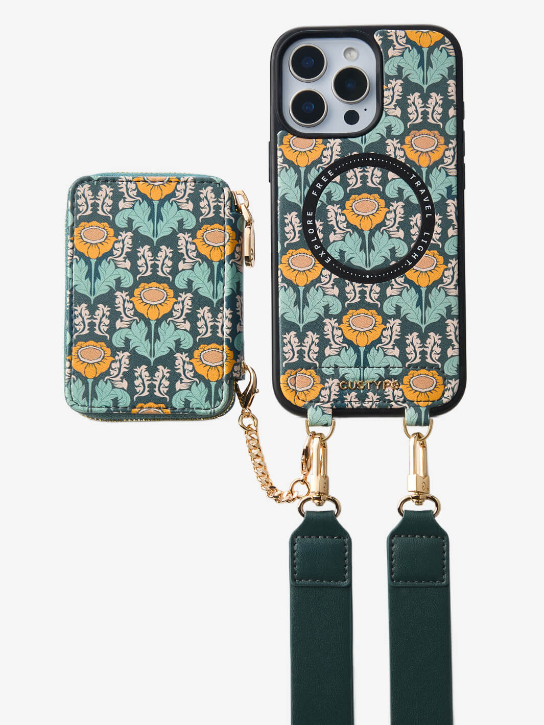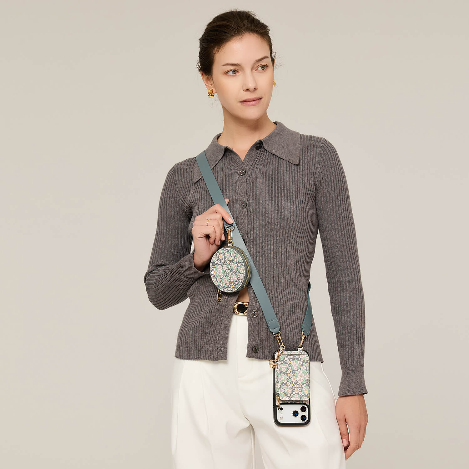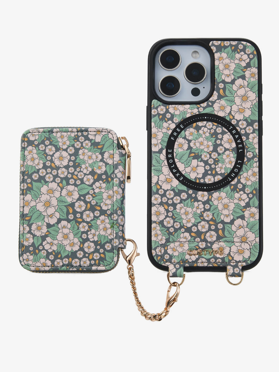 サラ・トラビとのコラボレーションでデザインされたこの限定セットは、自然からインスピレーションを得たユニークなパターンが特徴です。洗練されたMagSafe対応のスマートフォンケース、必需品を収納できるシックなラウンドポーチ、取り外し可能なウォレット、便利なストラップがセットになっており、機能性と爽やかな自然の美しさが融合し、毎日の冒険にぴったりです。