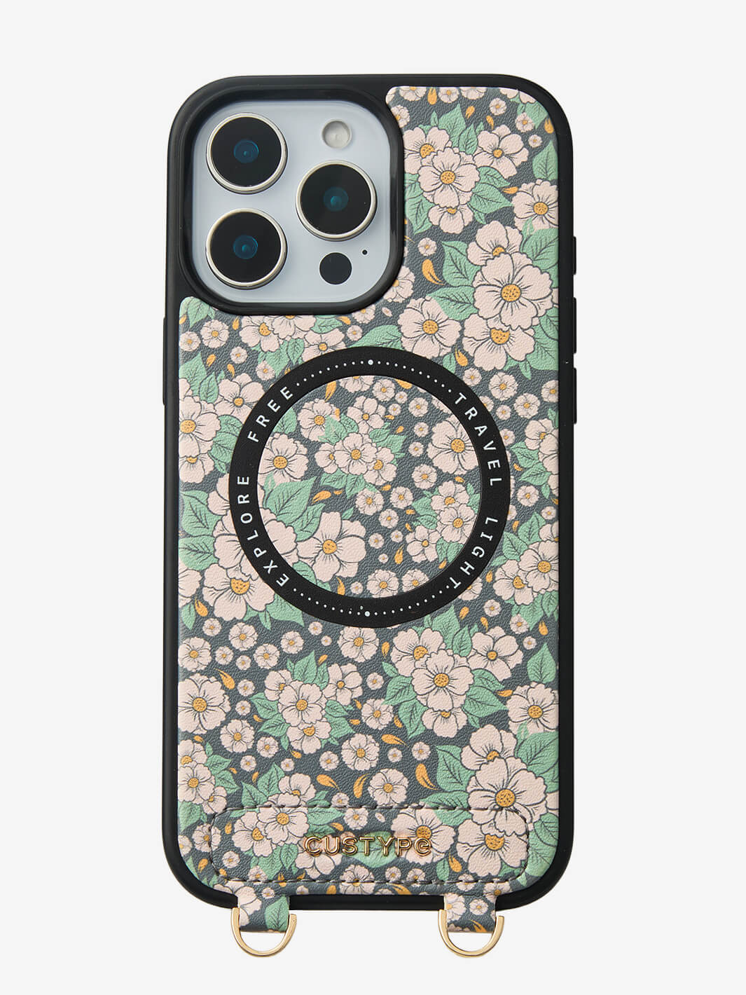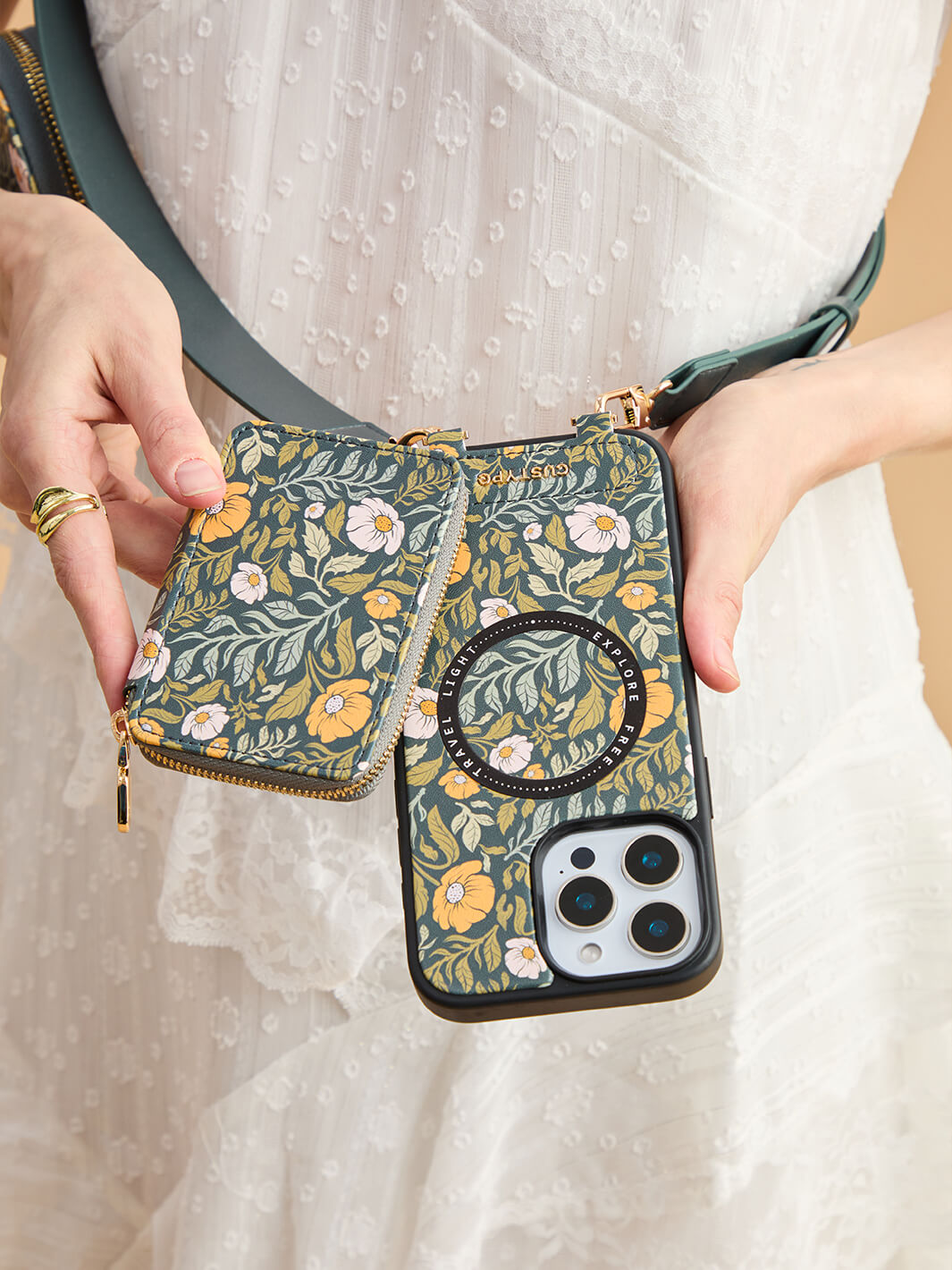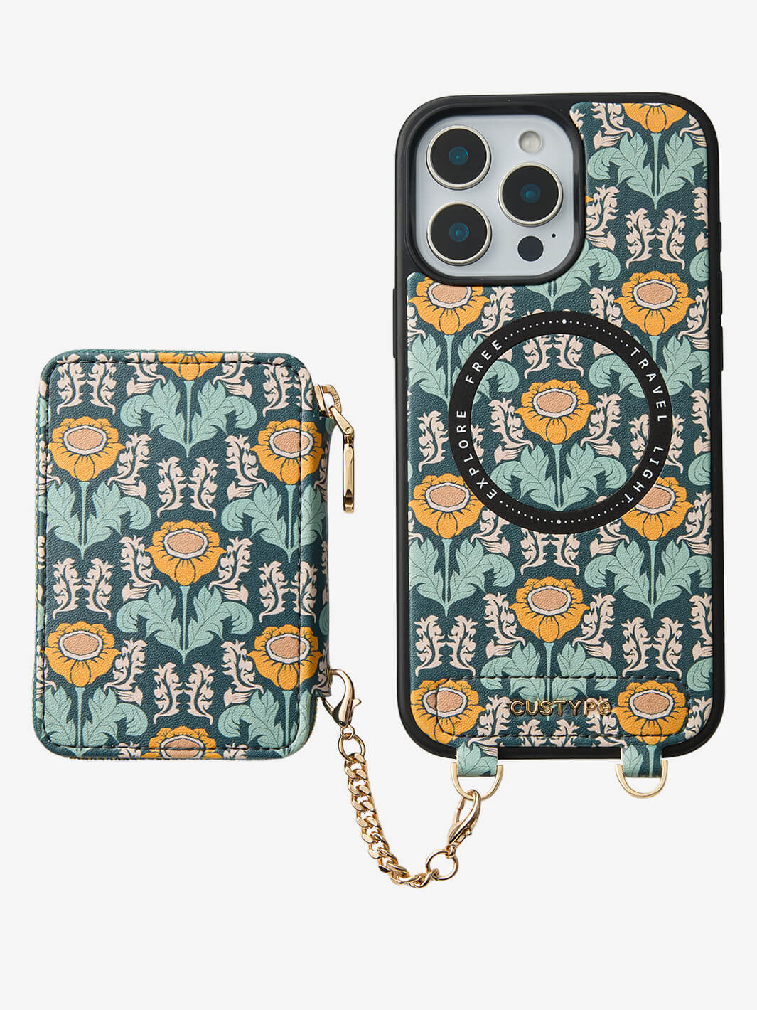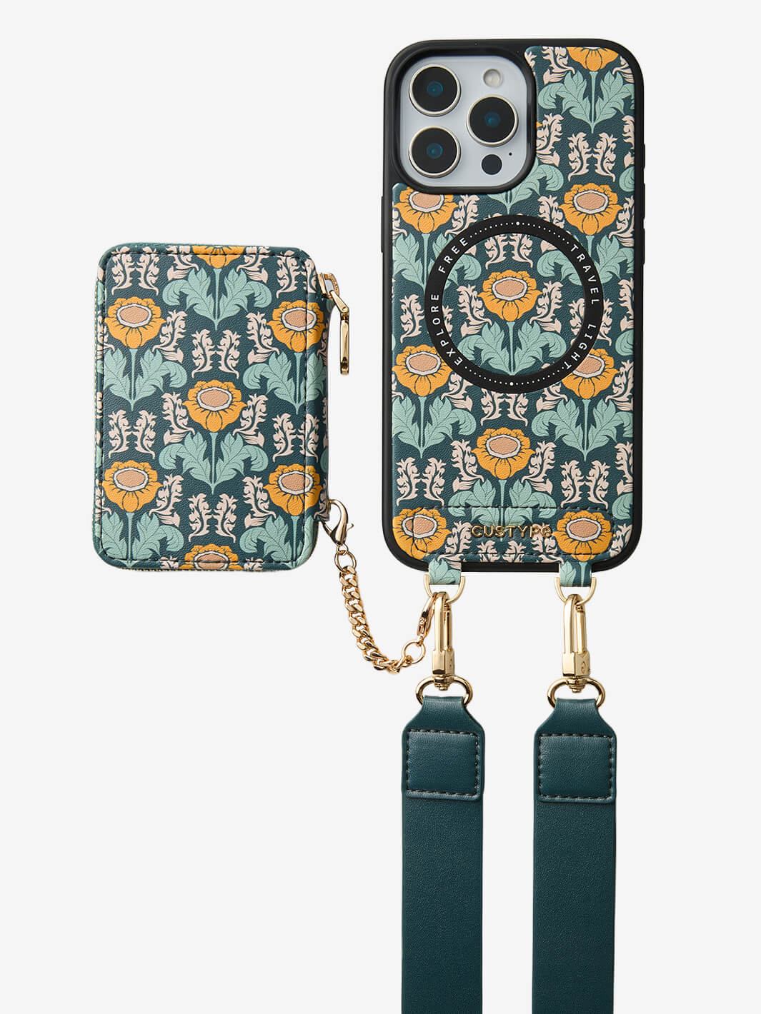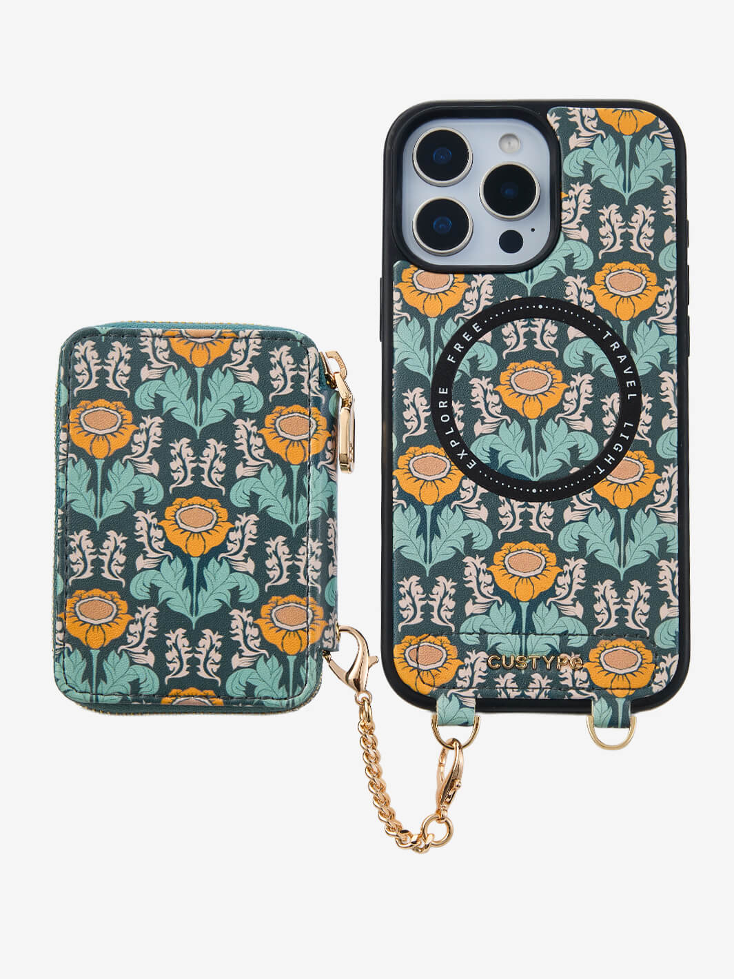 サラ・トラビとのコラボレーションでデザインされたこの限定セットは、自然からインスピレーションを得たユニークなパターンが特徴です。洗練されたMagSafe対応のスマートフォンケース、必需品を収納できるシックなラウンドポーチ、取り外し可能なウォレット、便利なストラップがセットになっており、機能性と爽やかな自然の美しさが融合し、毎日の冒険にぴったりです。