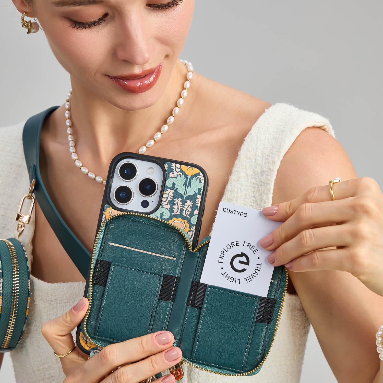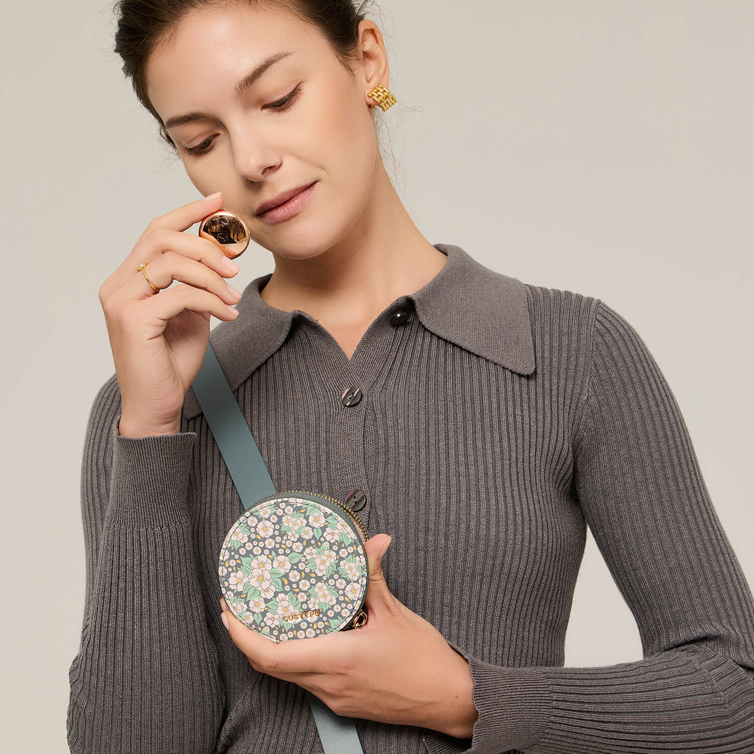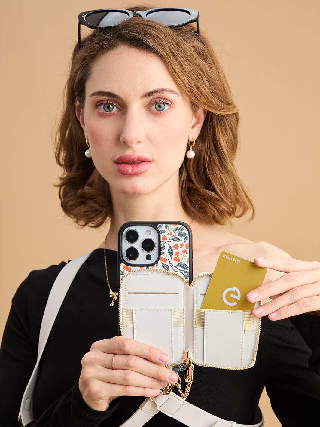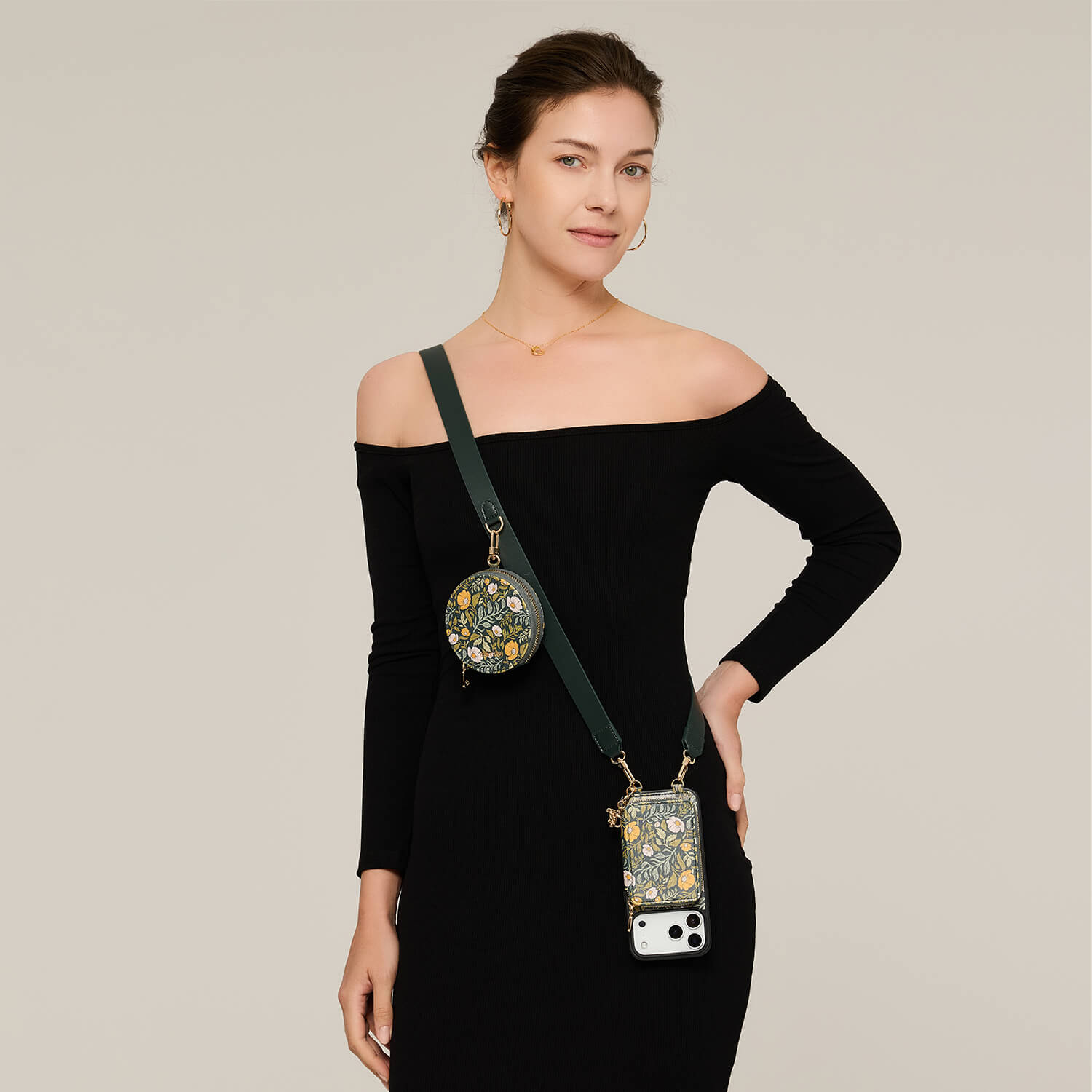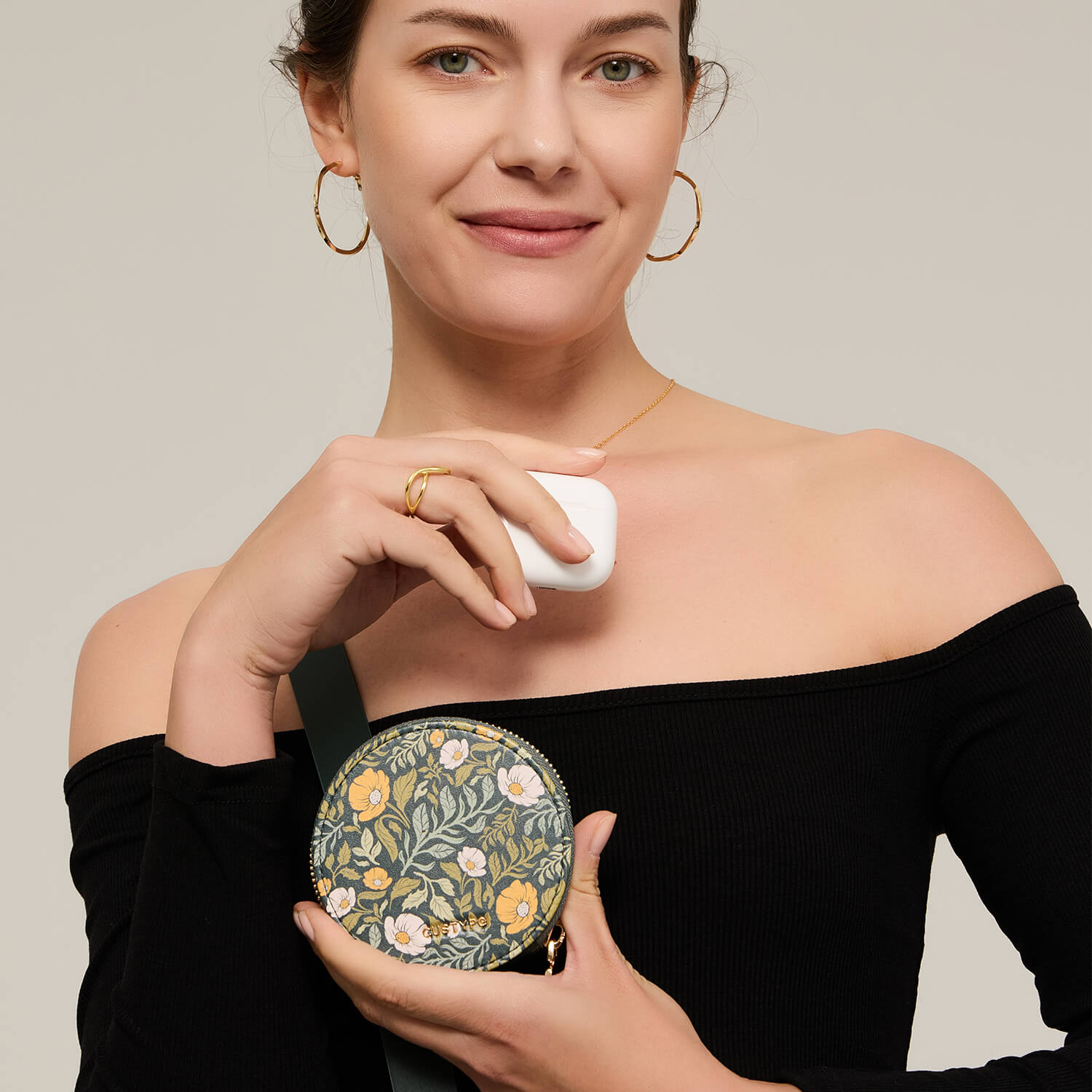 サラ・トラビとのコラボレーションでデザインされたこの限定セットは、自然からインスピレーションを得たユニークなパターンが特徴です。洗練されたMagSafe対応のスマートフォンケース、必需品を収納できるシックなラウンドポーチ、取り外し可能なウォレット、便利なストラップがセットになっており、機能性と爽やかな自然の美しさが融合し、毎日の冒険にぴったりです。