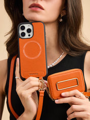 鮮やかな色合いのiPhoneケース&ラウンドポーチセットは、すべてのスマートフォンユーザーにとって必需品です。スタイリッシュなデザインと最高品質の素材が際立つ、このセットは他に類を見ません。クロスボディストラップ付きのiPhoneケースには、取り外し可能なMagSafe対応マグネット式ウォレットが付属し、便利なスタンドとしても使えるので、見やすくなっています。さらに、必需品を収納できる大きなラウンドポーチも付属しています。このセットは、機能性とスタイルの両方を高め、日々の生活に欠かせないアクセサリーとなるでしょう。