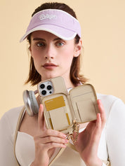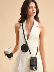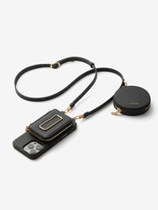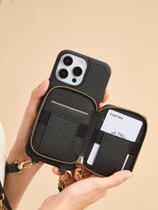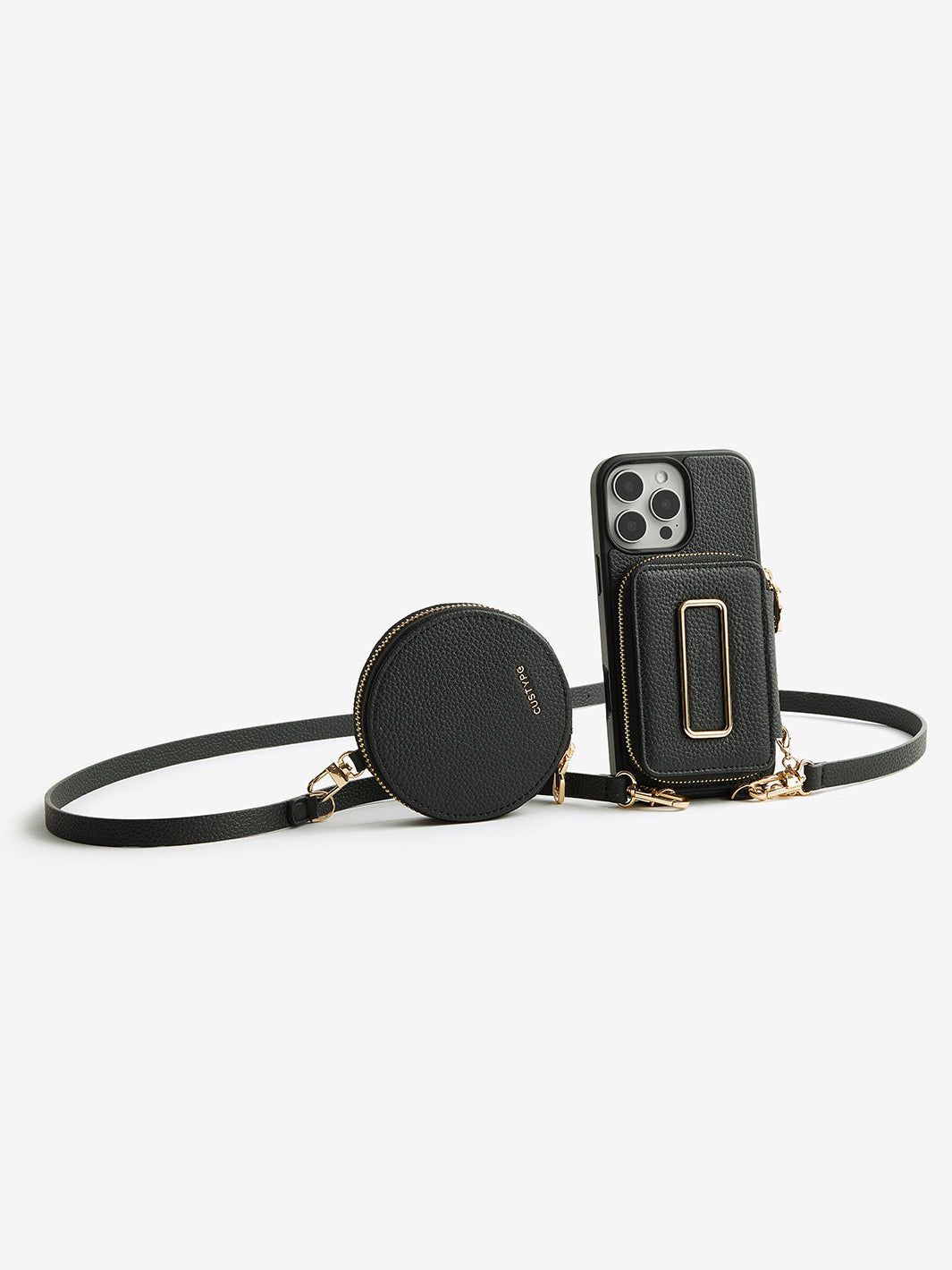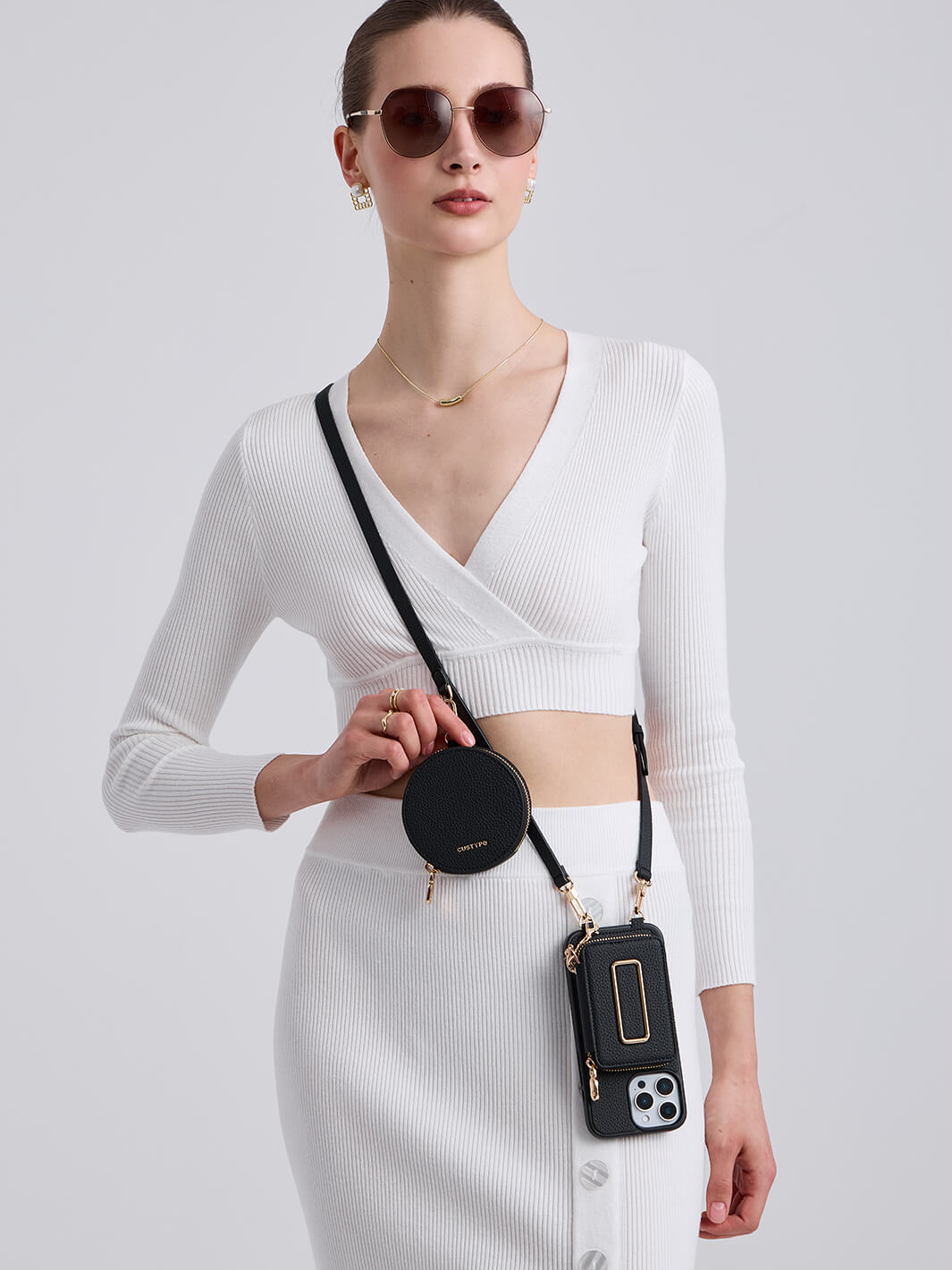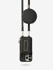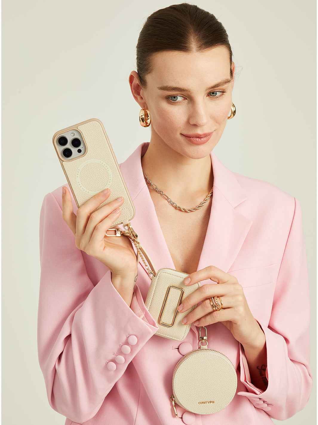 オリジナルデザインセット - 取り外し可能なワイヤレス充電クロスボディスクエアスタンドウォレット電話ケースラウンドポーチセット