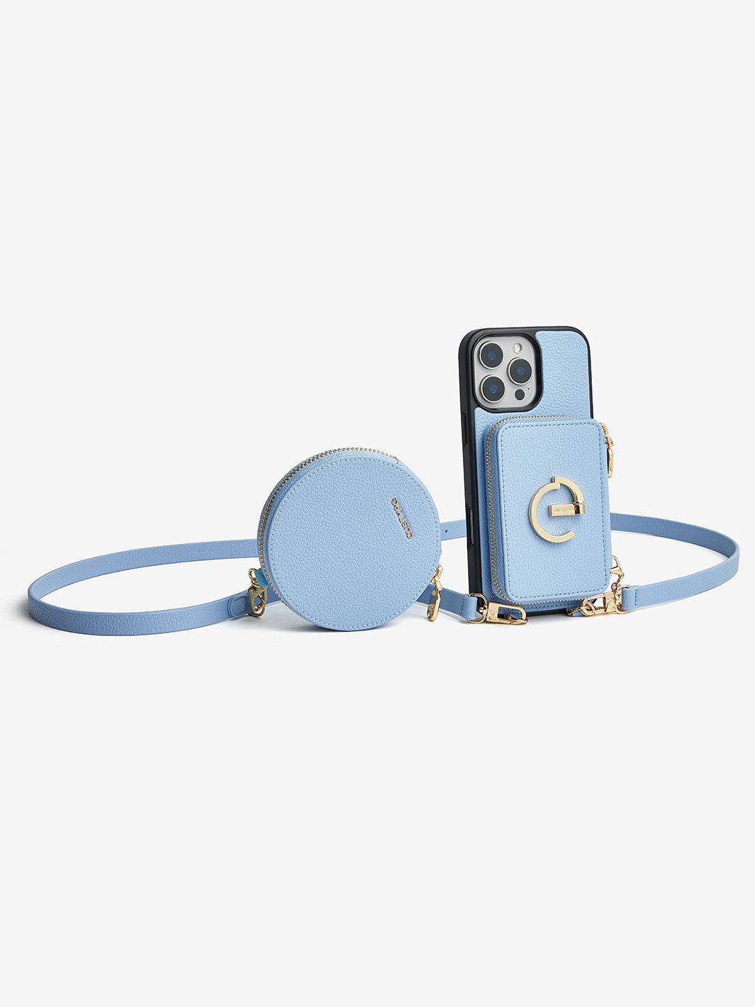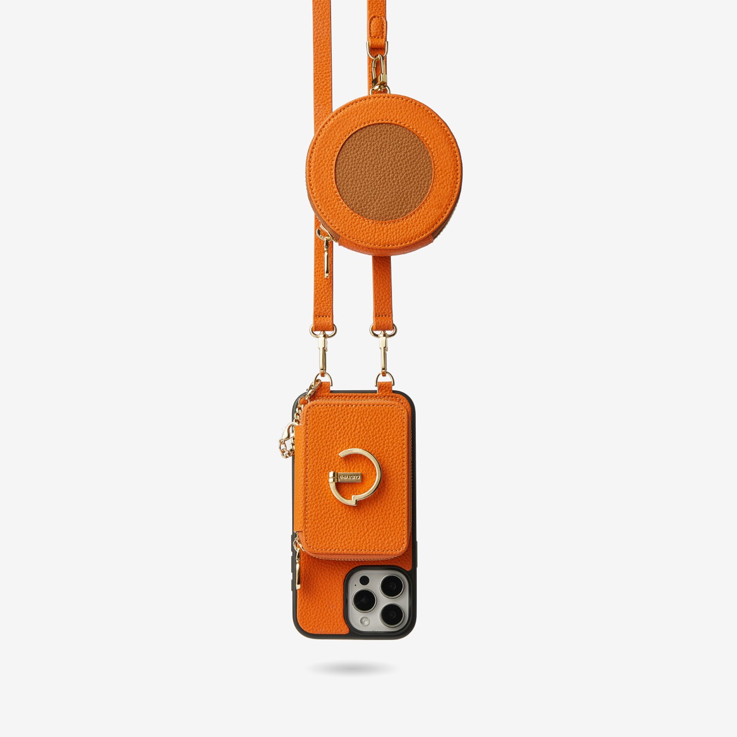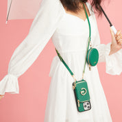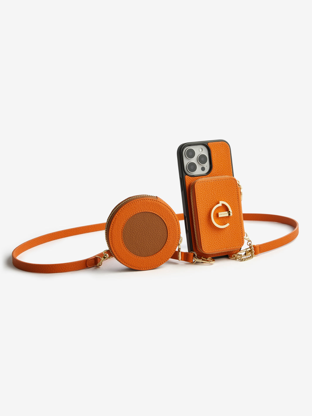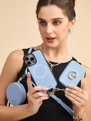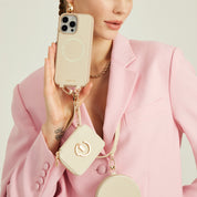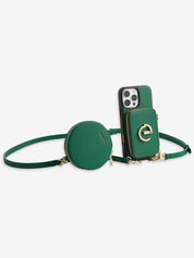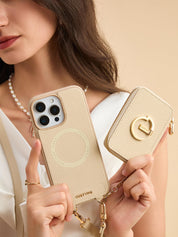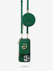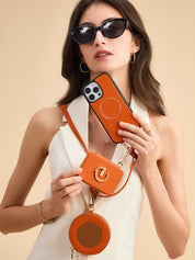 オリジナルデザインセット - 取り外し可能なワイヤレス充電クロスボディウォレット電話ケースラウンドポーチセット