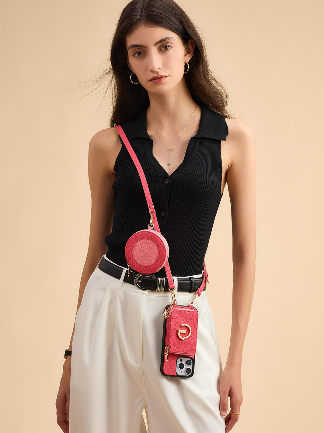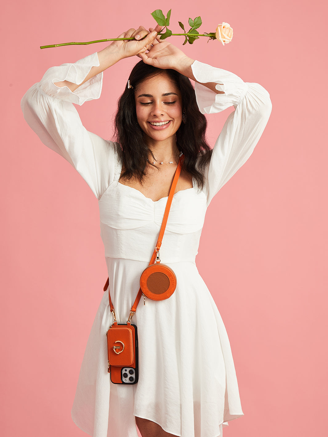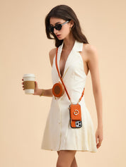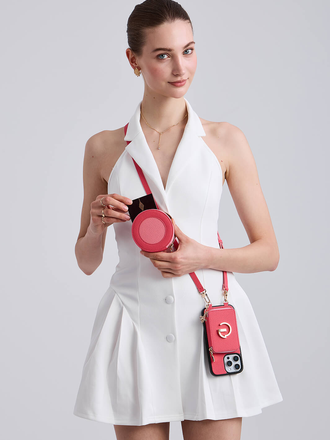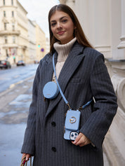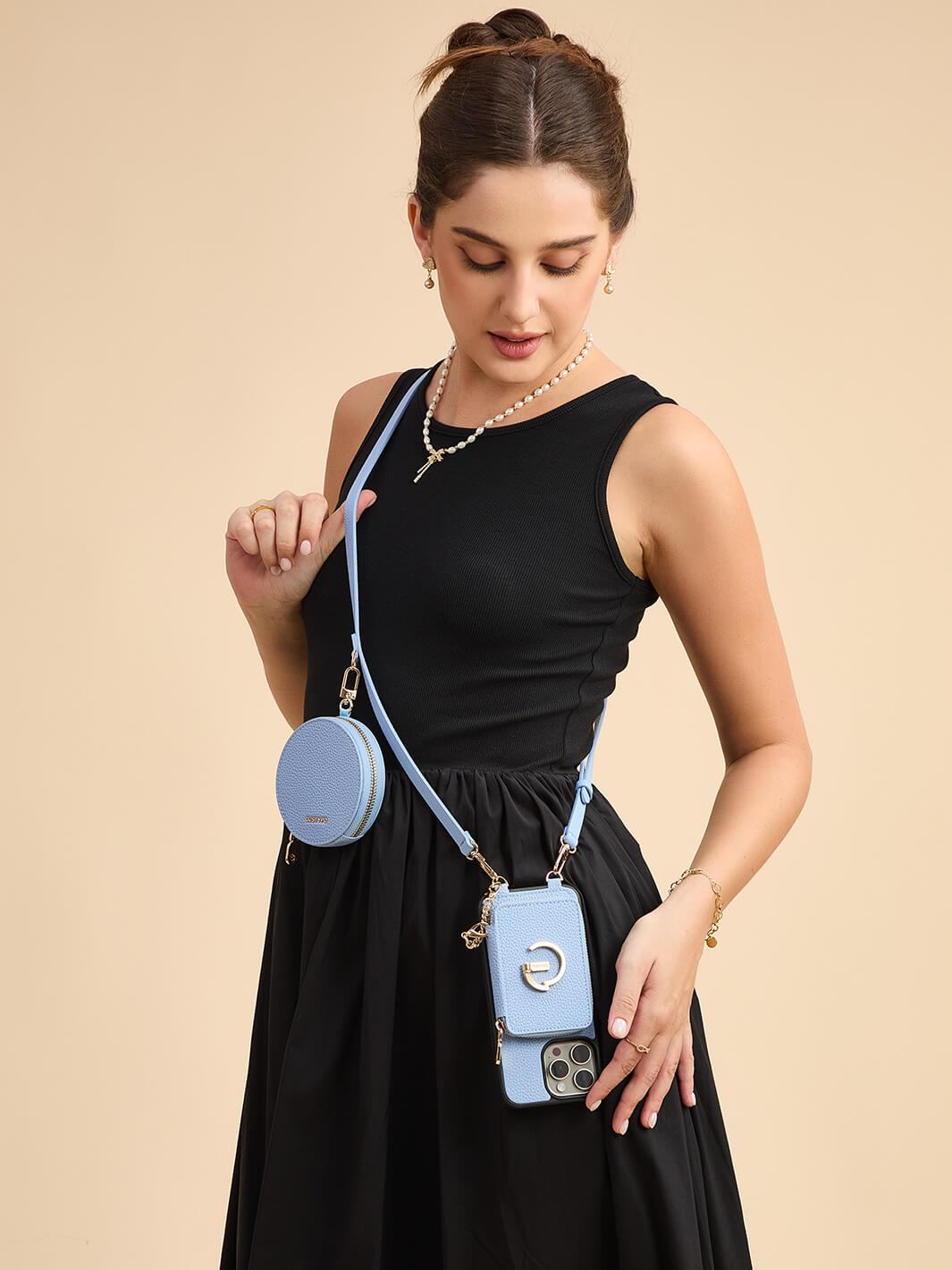 オリジナルデザインセット - 取り外し可能なワイヤレス充電クロスボディウォレット電話ケースラウンドポーチセット