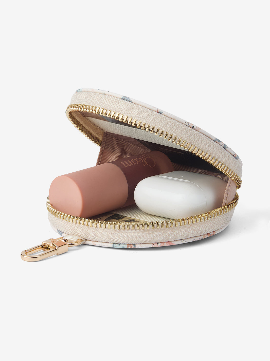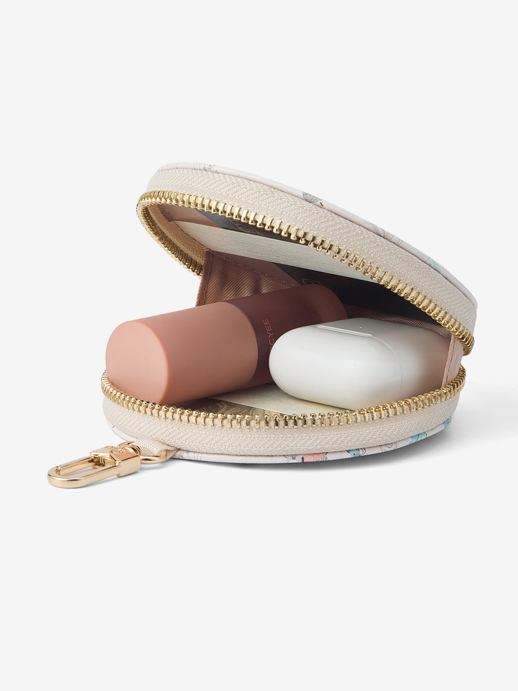 - ラウンドポーチはAirPodsやメイク用品などの収納に最適で、使い勝手を最大化します。