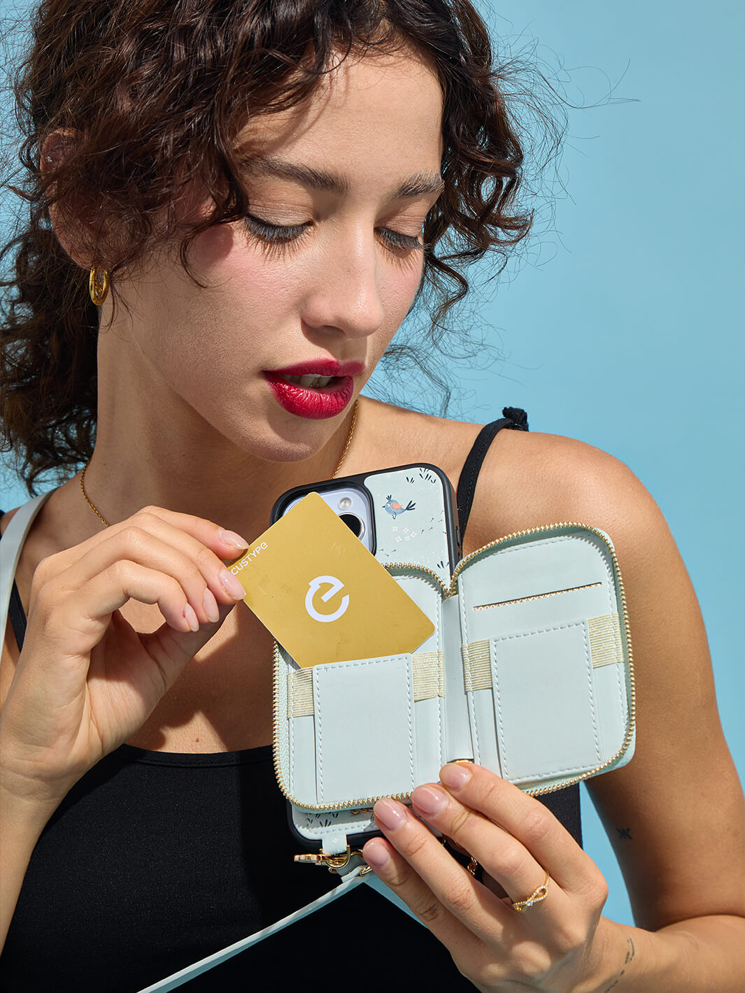 - 複数のカードスロットとRFID保護機能を備えた取り外し可能なウォレットポーチ。