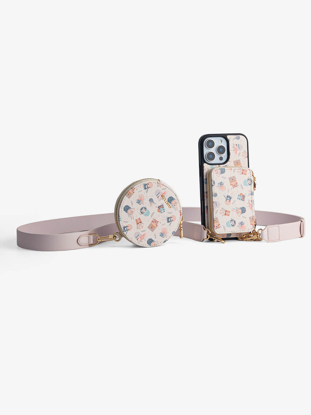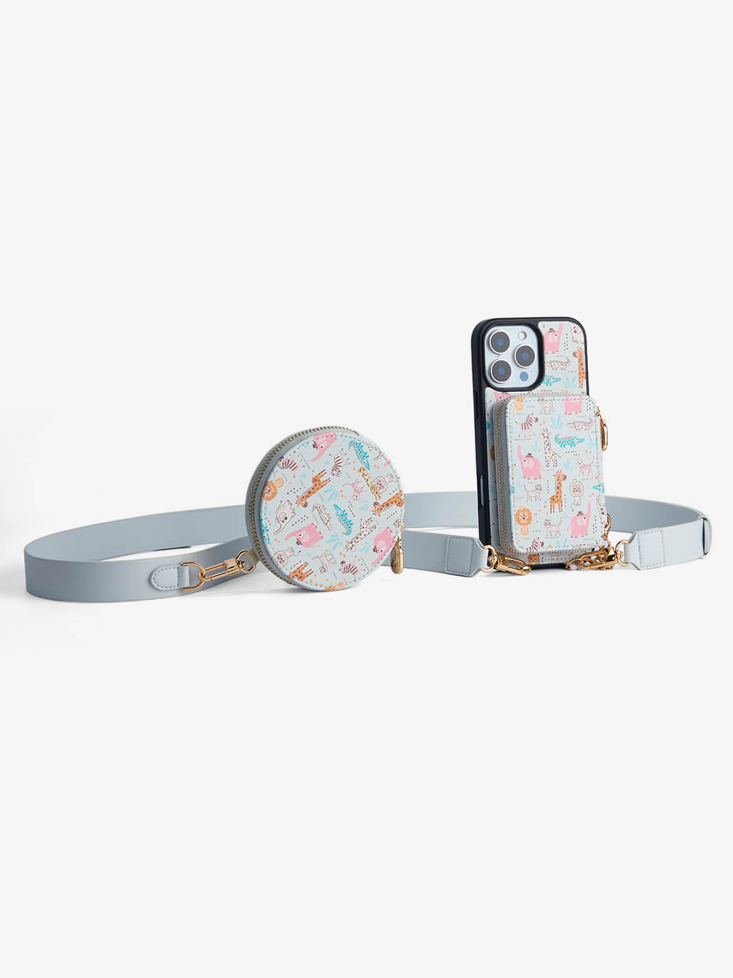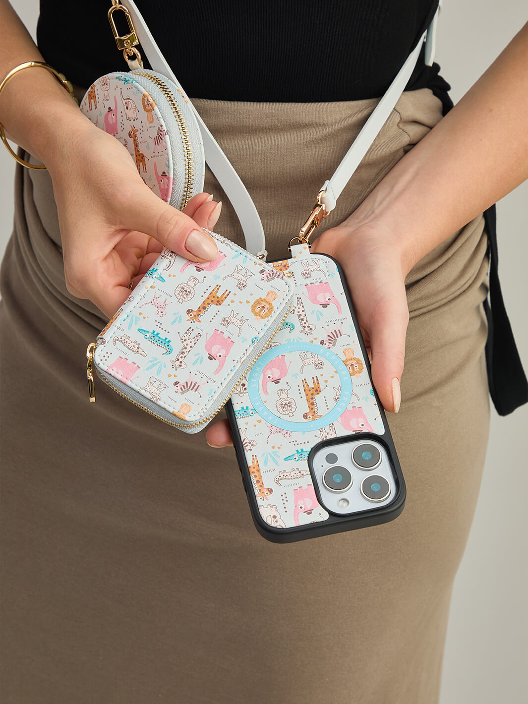 デザイナーElena Amoによる、動物をテーマにしたスマホケースセットをご紹介します!動物、昆虫、鳥など、魅力的なプリントが揃ったこのウォレットケースは、可愛らしさと実用性を兼ね備えています。クロスボディストラップ、MagSafeケース、そして取り外し可能なウォレットが付属し、遊び心のある保護力とハンズフリーの利便性を求める自然愛好家にぴったりです。
