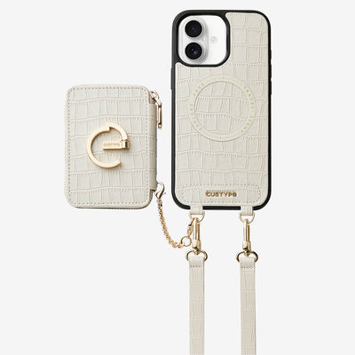 クロコダイルデザインセットは、シンプルさと機能性を兼ね備えています。クロスボディストラップ、取り外し可能なウォレット、ワイヤレス充電対応のスマートフォンケースが付属し、日々のニーズを満たします。クロコダイル柄は控えめながらもエレガント。スマートフォン、カード、現金を整理しやすく、どんなお出かけにも便利です。