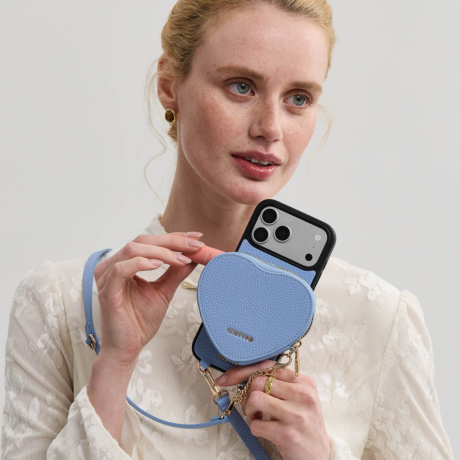 iPhone15ケースMagsafeの磁力を活かした、Custypeだけの特別なセット。もうお出かけに大きなバッグは必要ありません。このスマホショルダーは、遊び心のあるハートポーチとコインケースに、リップや鍵、カードをすべて収納できる設計です。肩に掛ける携帯ケースショルダー(スマホストラップ付き)スタイルなら、両手が空いてフットワークも軽く。iPhone15ケースおしゃれの新定番として、あなたの日常をスマートで可愛い「手ぶらスタイル」へと変えてくれます。