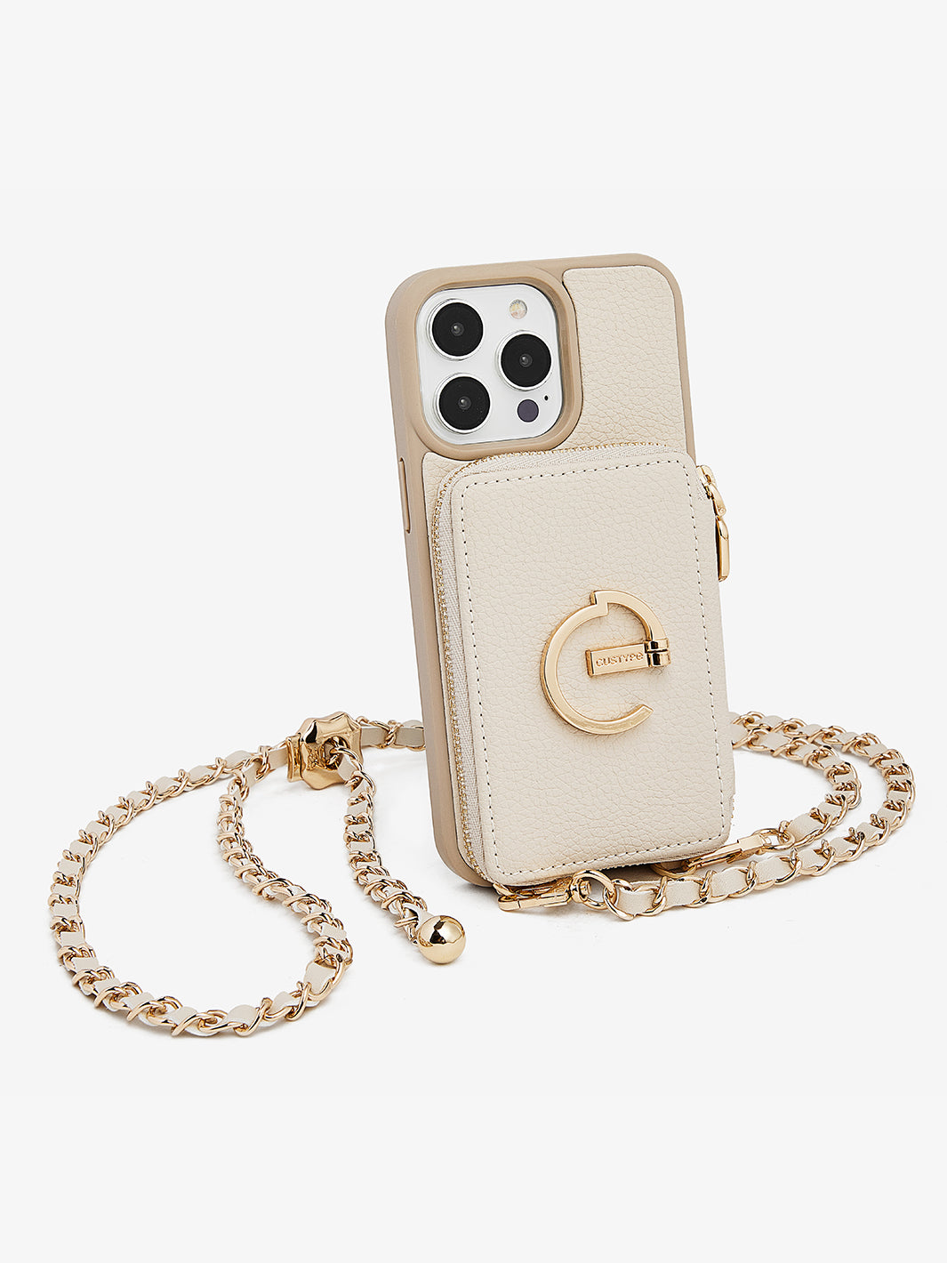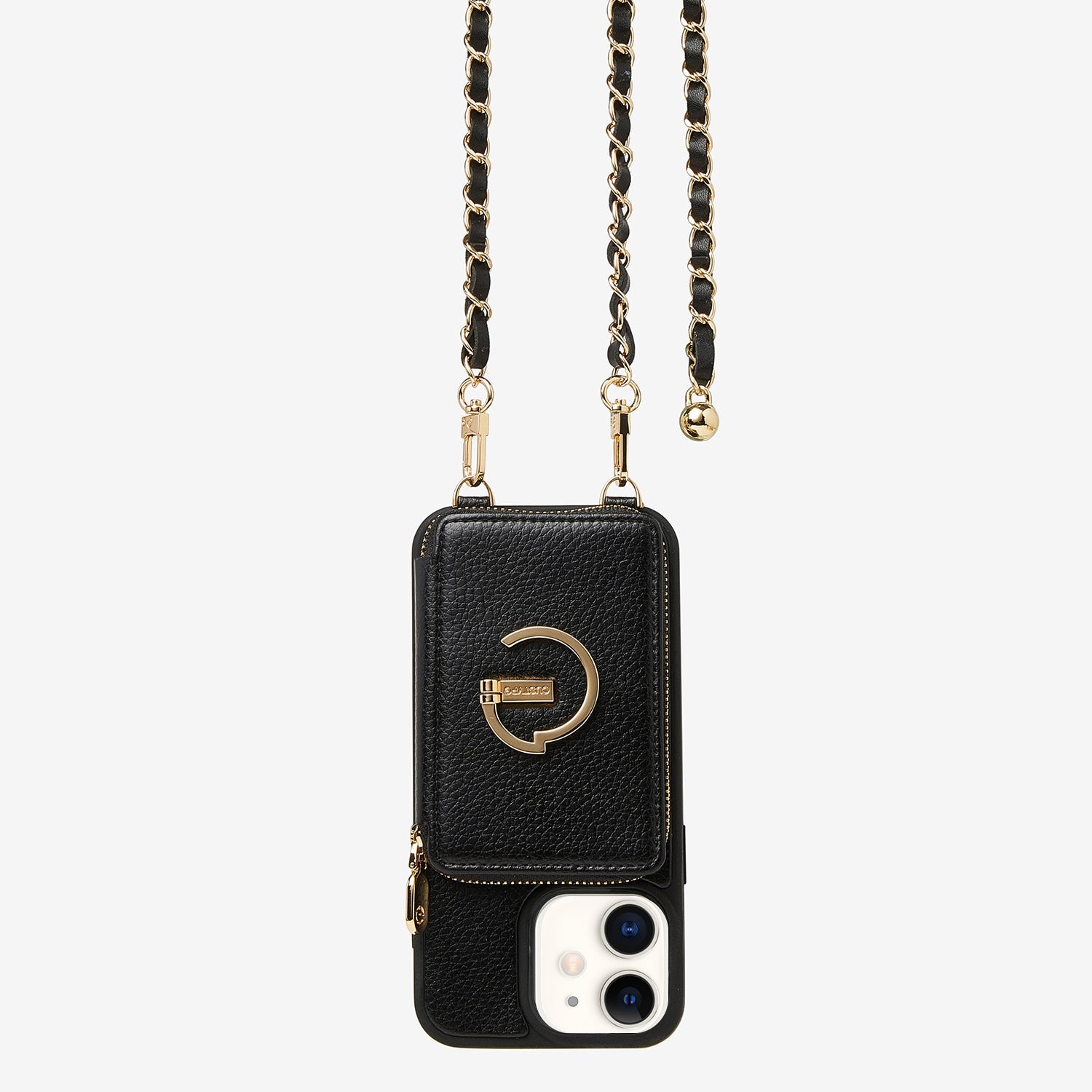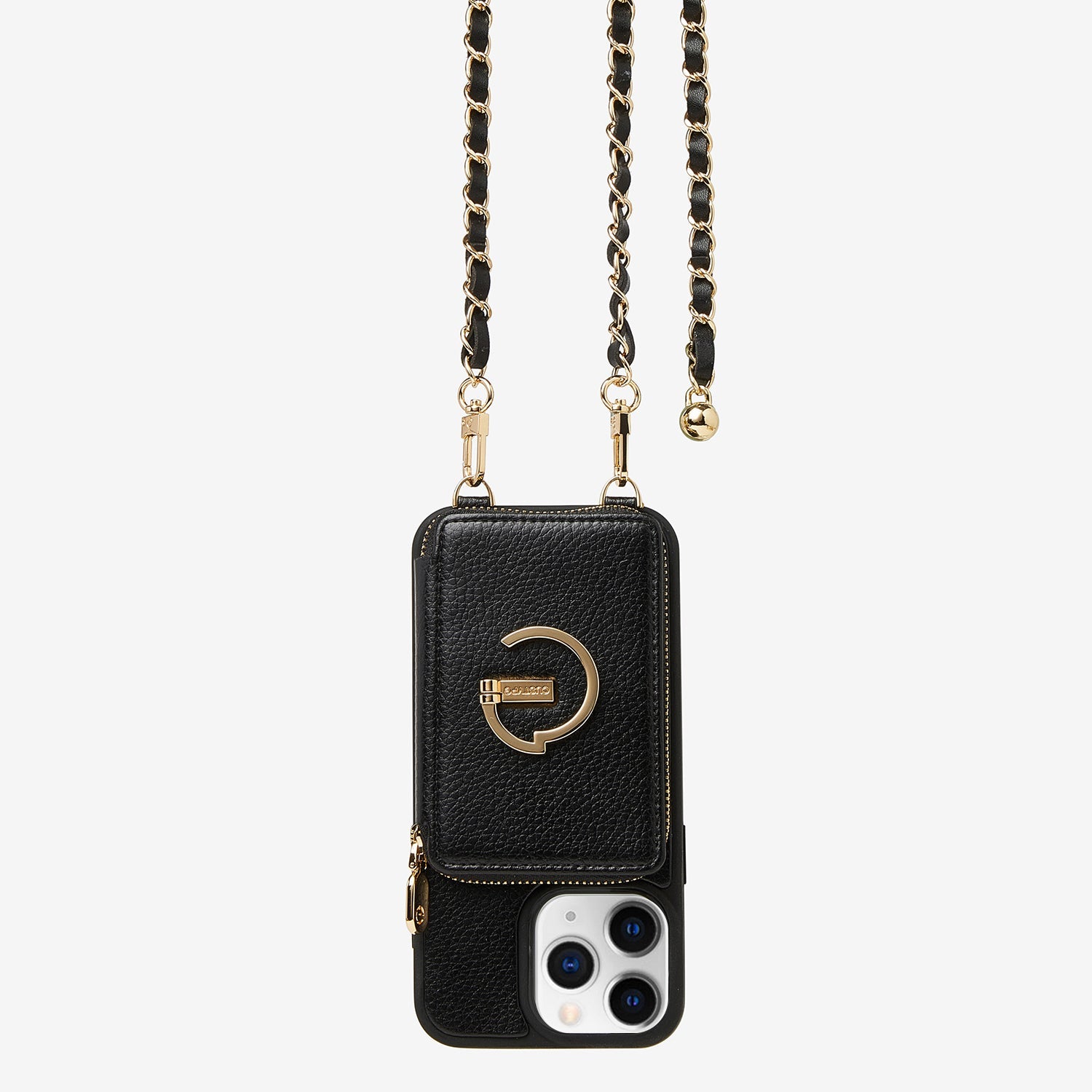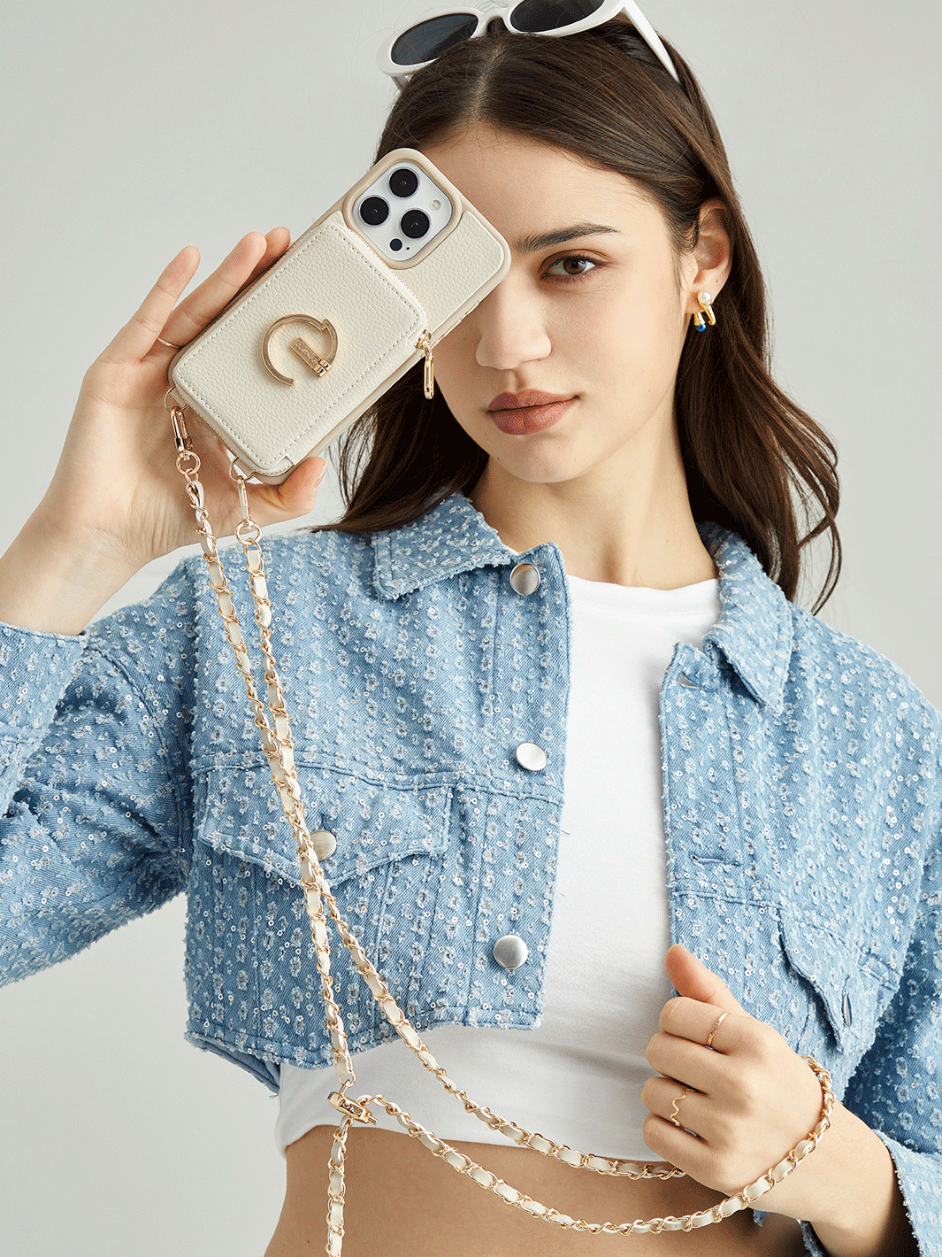 贅沢なライチの質感で作られたスタイリッシュなiPhoneウォレット、チャーム付きチェーンストラップ付きフォンケースをご紹介します。 取り外し可能で調節可能なストラップが付いたこのライチケースは、携帯電話、現金、カードを外出時に目立たずに持ち運ぶのに最適です。