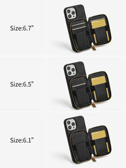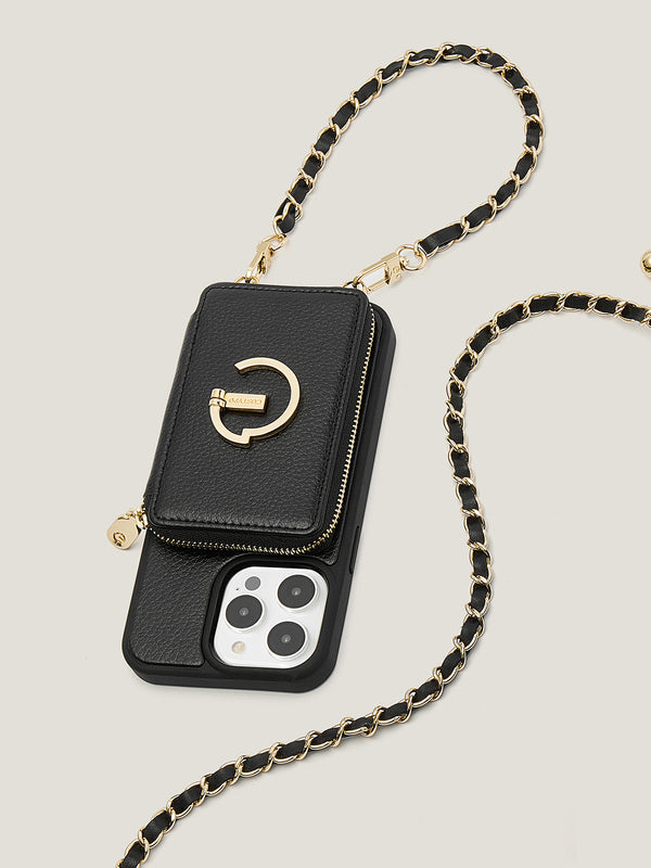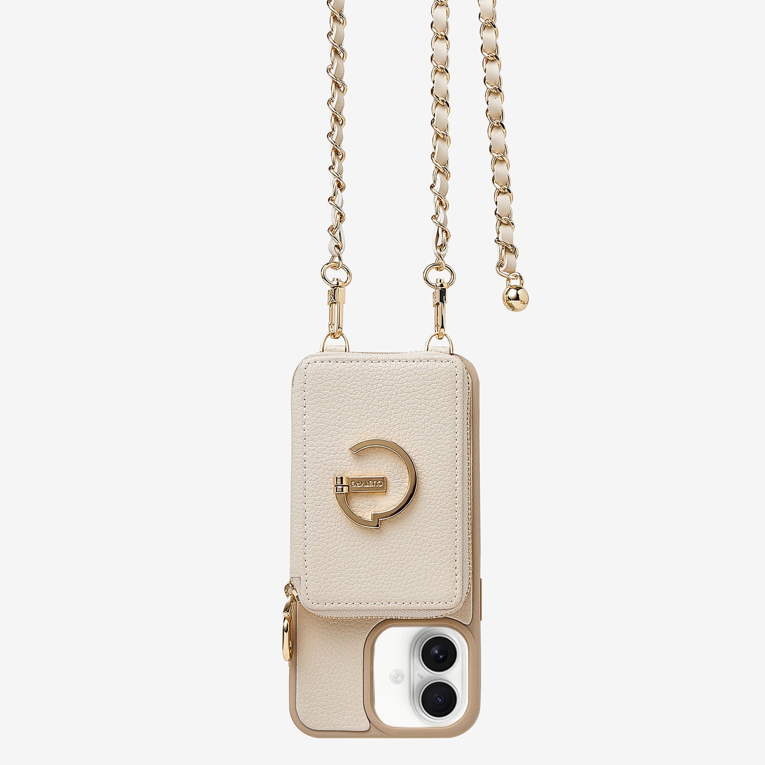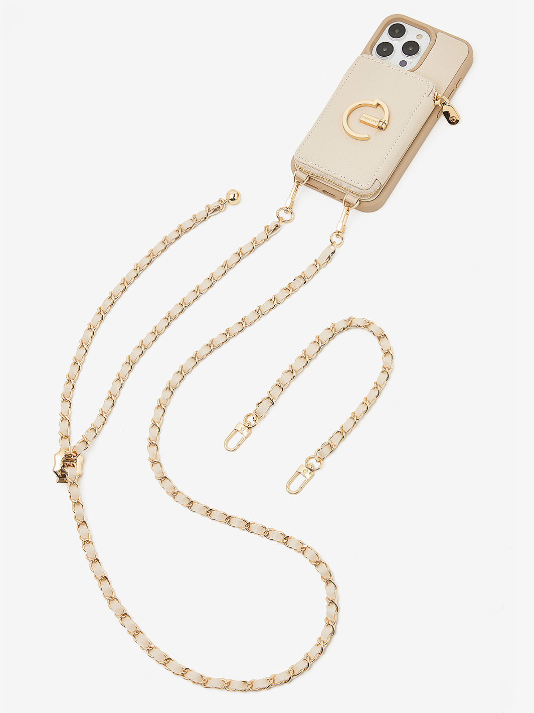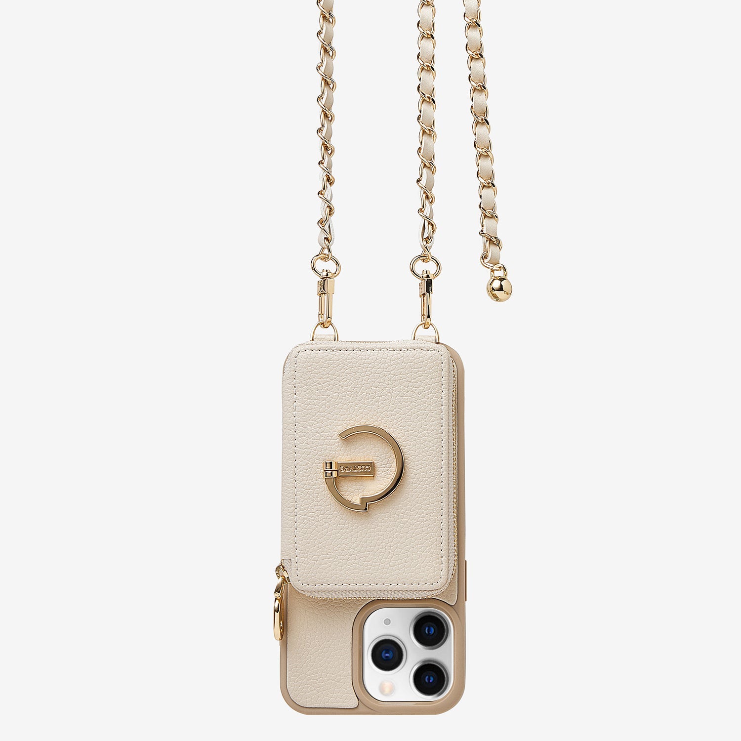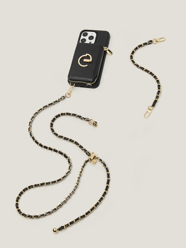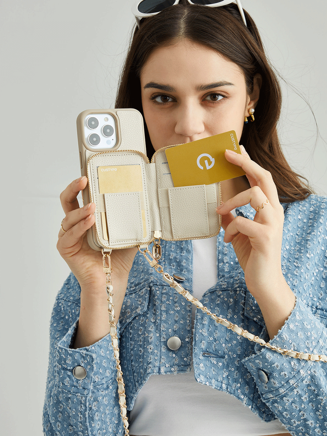 贅沢なライチの質感で作られたスタイリッシュなiPhoneウォレット、チャーム付きチェーンストラップ付きフォンケースをご紹介します。 取り外し可能で調節可能なストラップが付いたこのライチケースは、携帯電話、現金、カードを外出時に目立たずに持ち運ぶのに最適です。