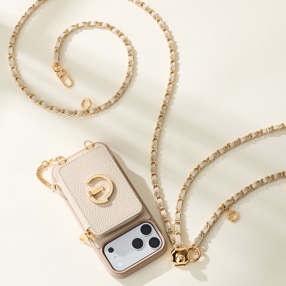 アリュールチェーンシリーズ - ストラップ付きマグネット式ウォレットフォンケース(フィンガーホルダー付き)