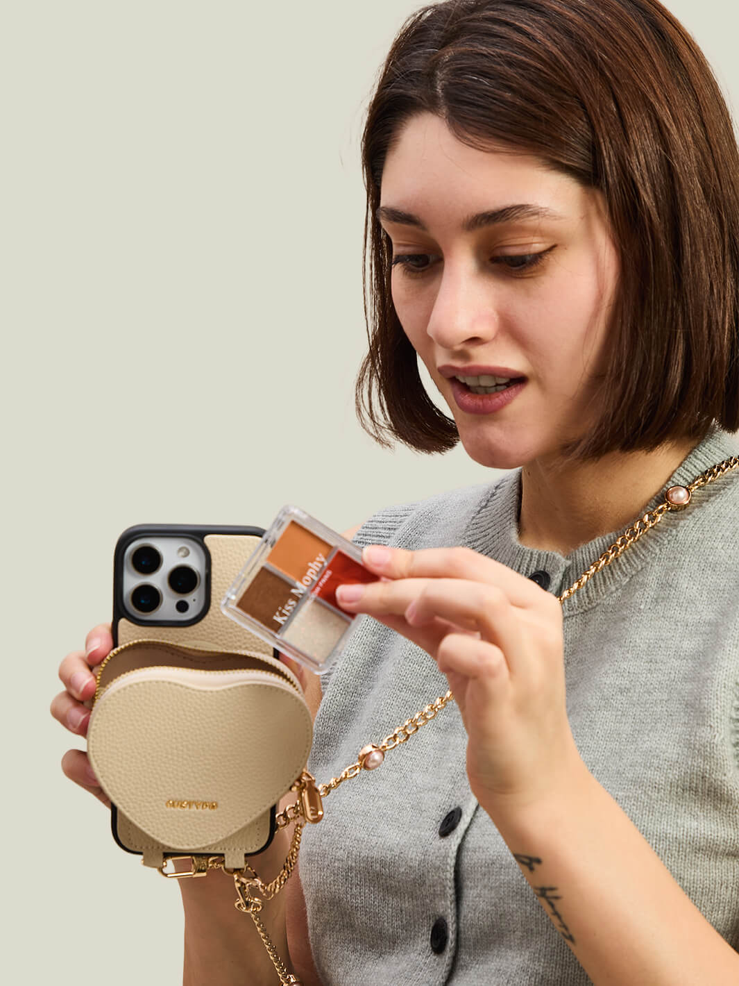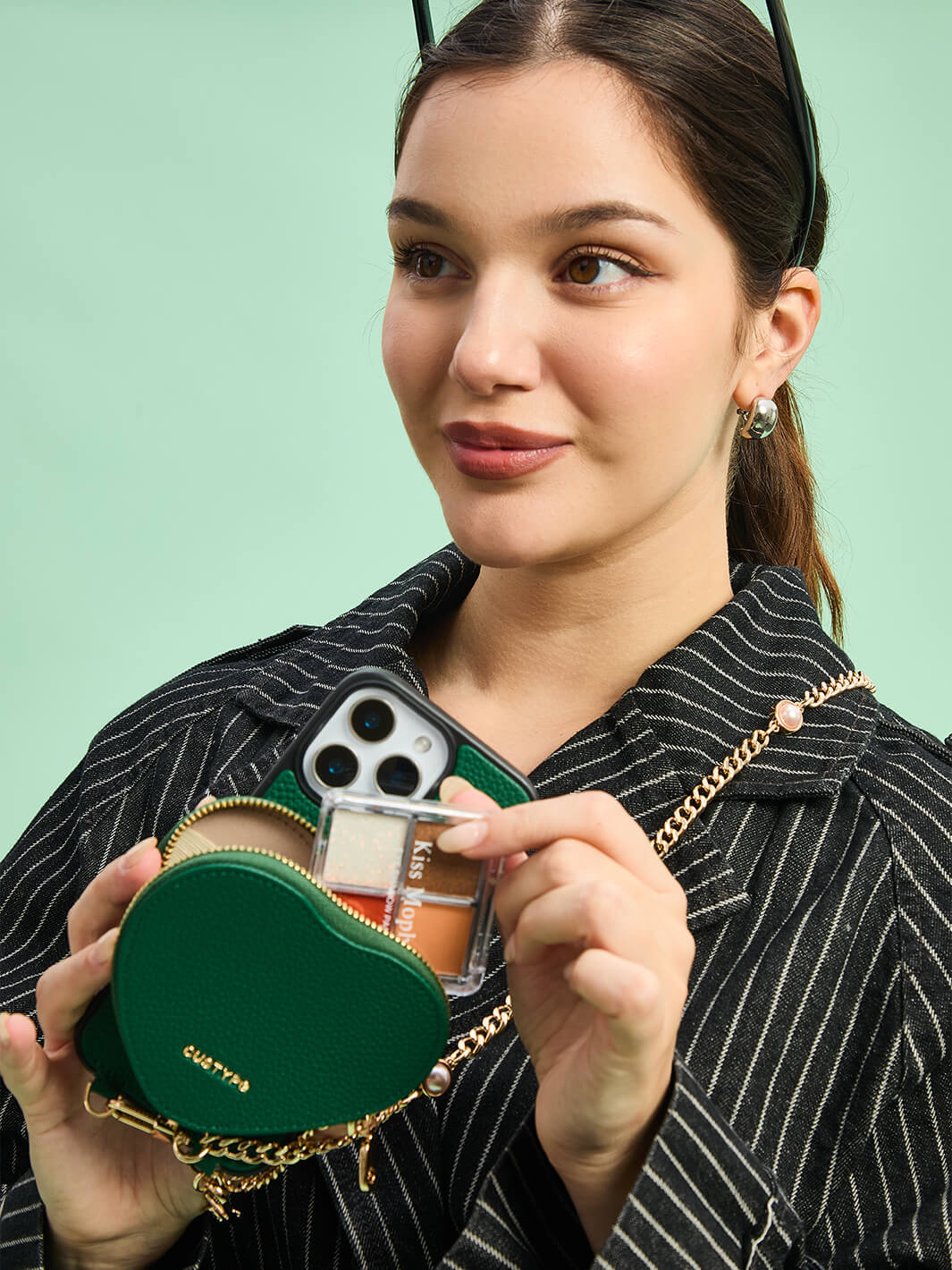 - 可愛いハートポーチは、カード、リップスティック、AirPodsなどを収納でき、スタイリッシュに日常の整理が可能。