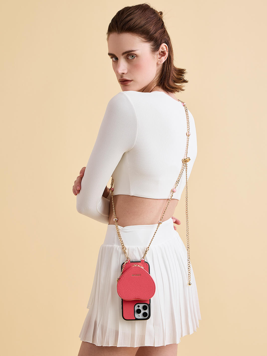- パールアクセント付きの調節可能クロスボディチェーンは、繊細でエレガントなハンズフリーの持ち運びを提供。