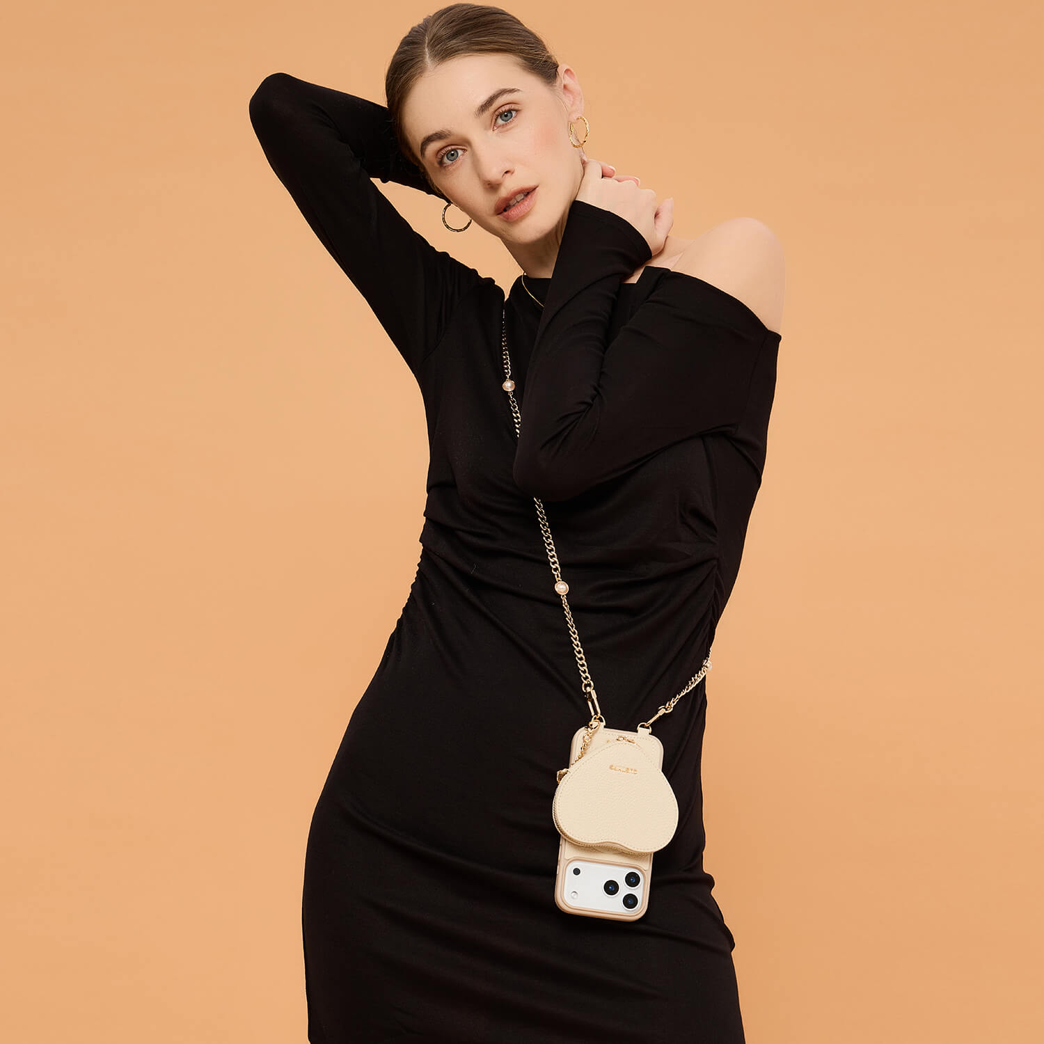 - パールアクセント付きの調節可能クロスボディチェーンは、繊細でエレガントなハンズフリーの持ち運びを提供。