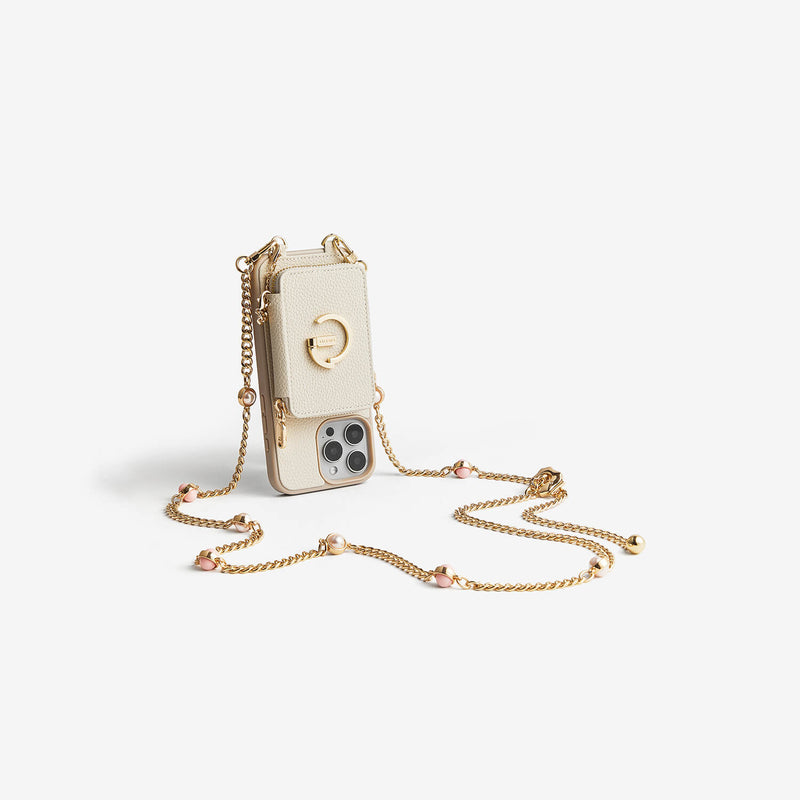 キャンディチェーンキット - マグネット式分離型ウォレットiPhoneケース(パールチェーン&グリップ付き)