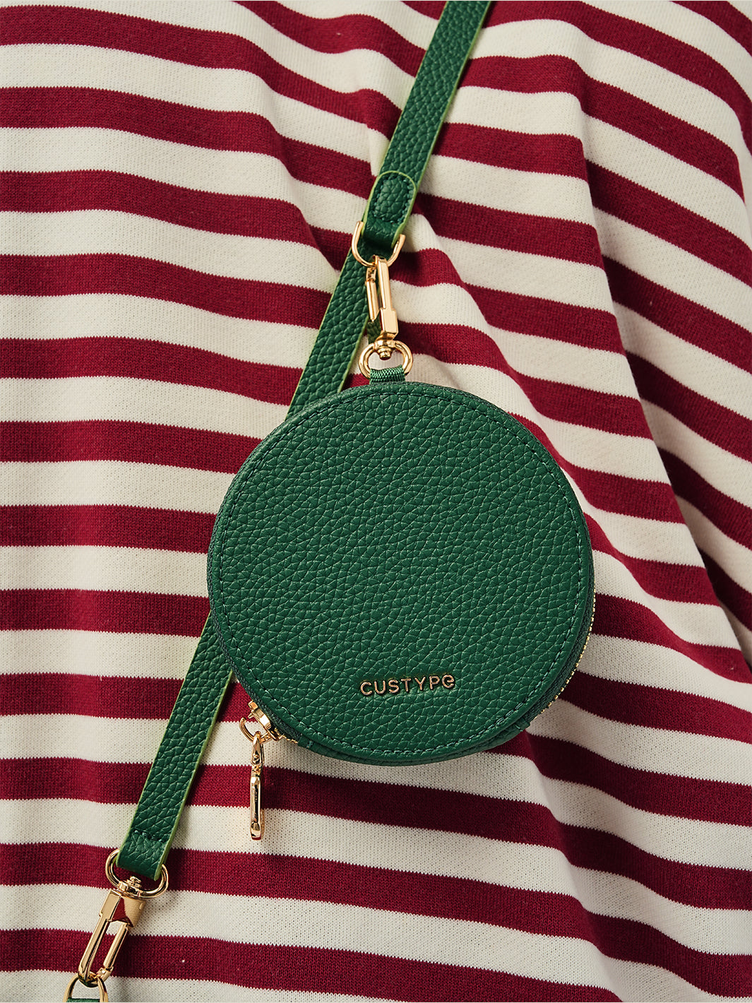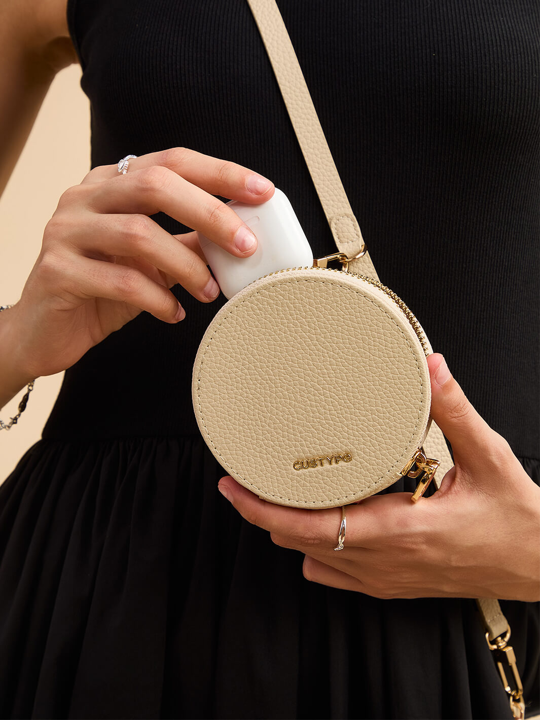 - 小物を安全かつスタイリッシュに収納できるコンパクトなラウンドポーチ。