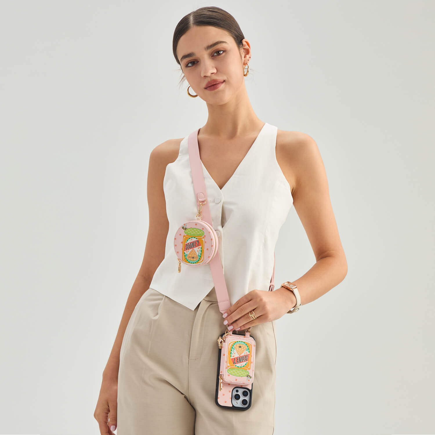 Jacqueline- Tasty Theme iPhone Crossbody Case with Card Holder & Pouch
