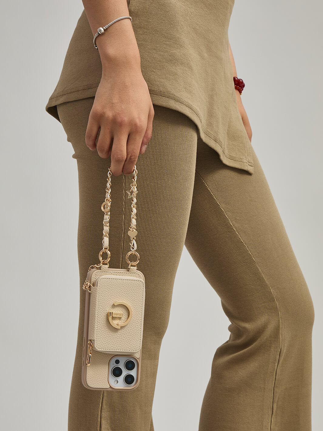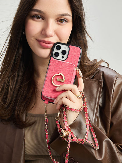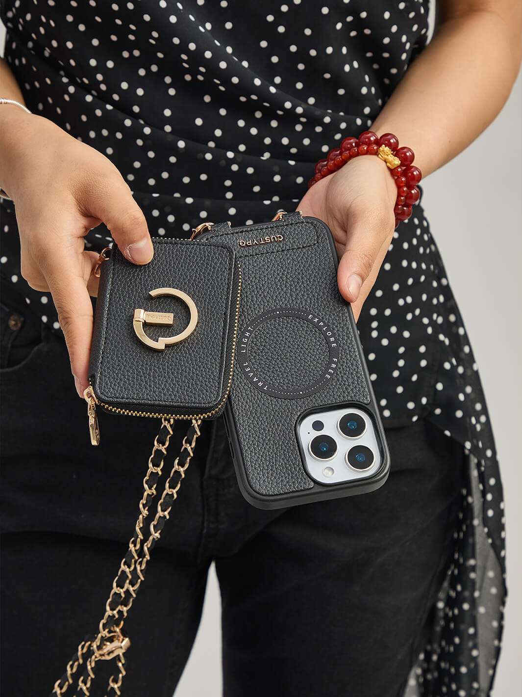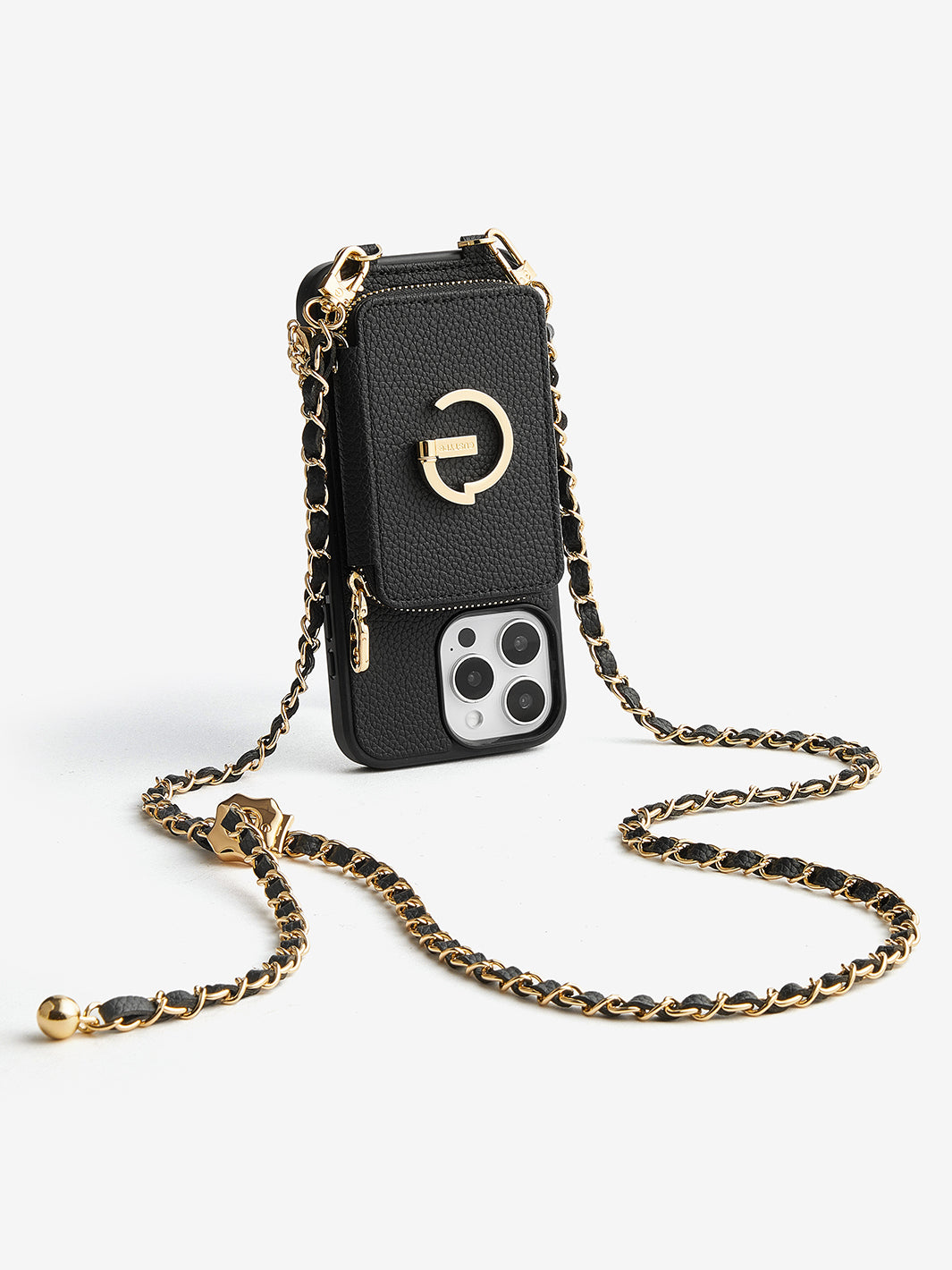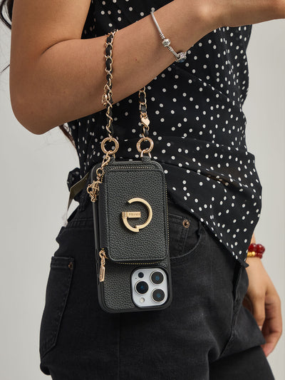 Allure Chain Series- Lanyard Magnetic Wallet Phone Case with Finger Holder