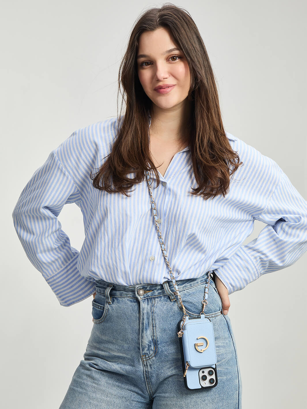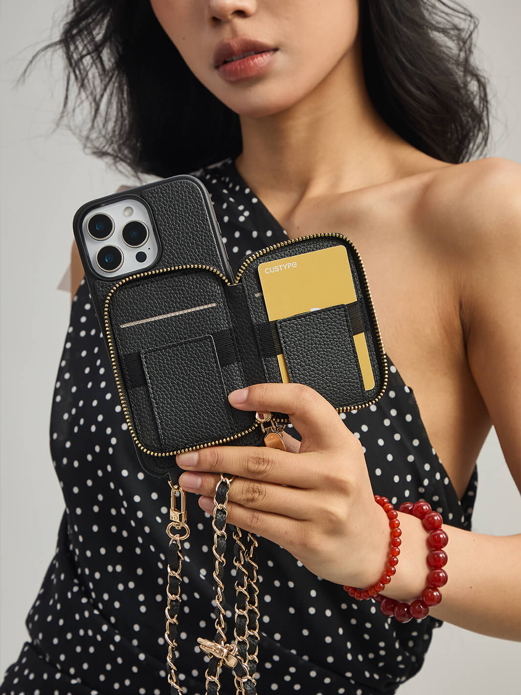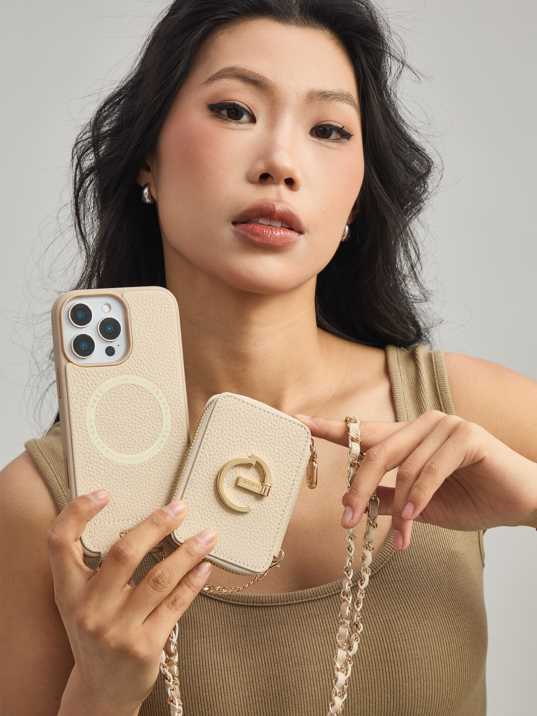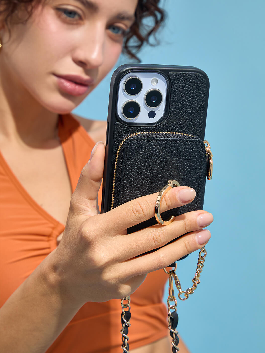 Allure Chain Series- Lanyard Magnetic Wallet Phone Case with Finger Holder