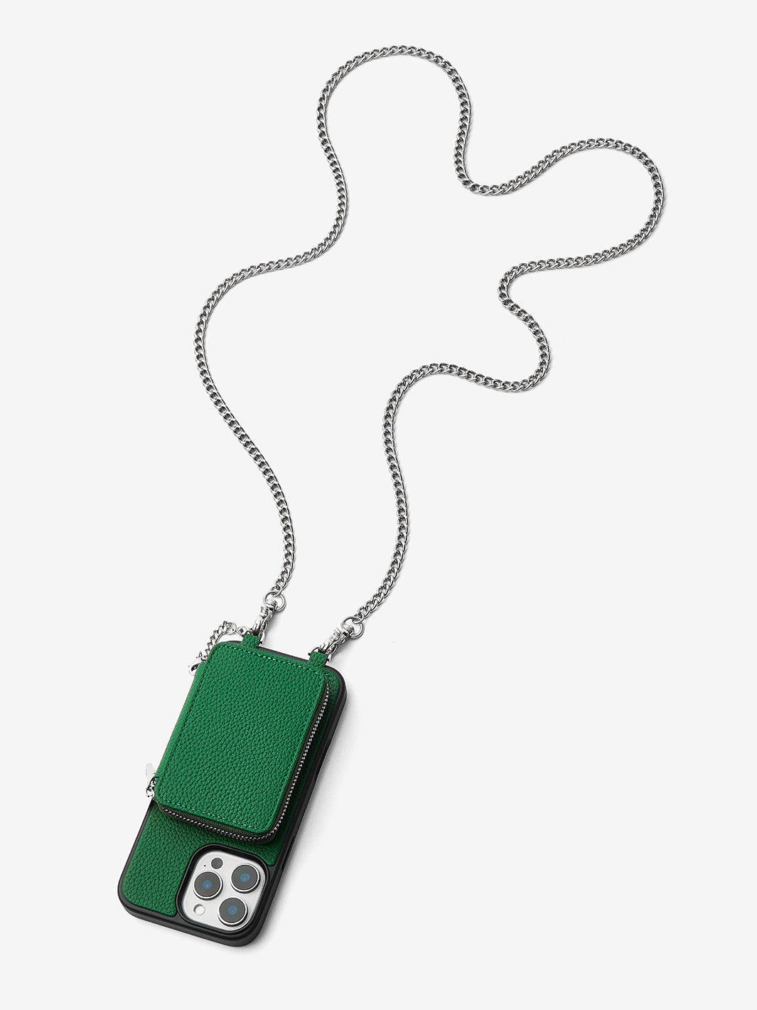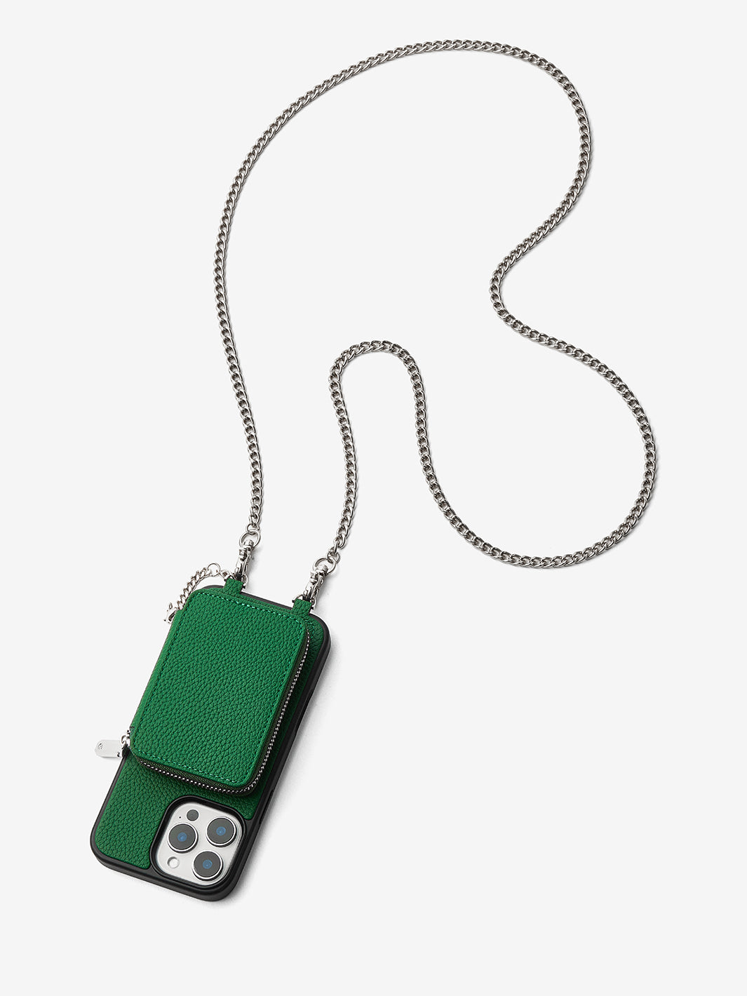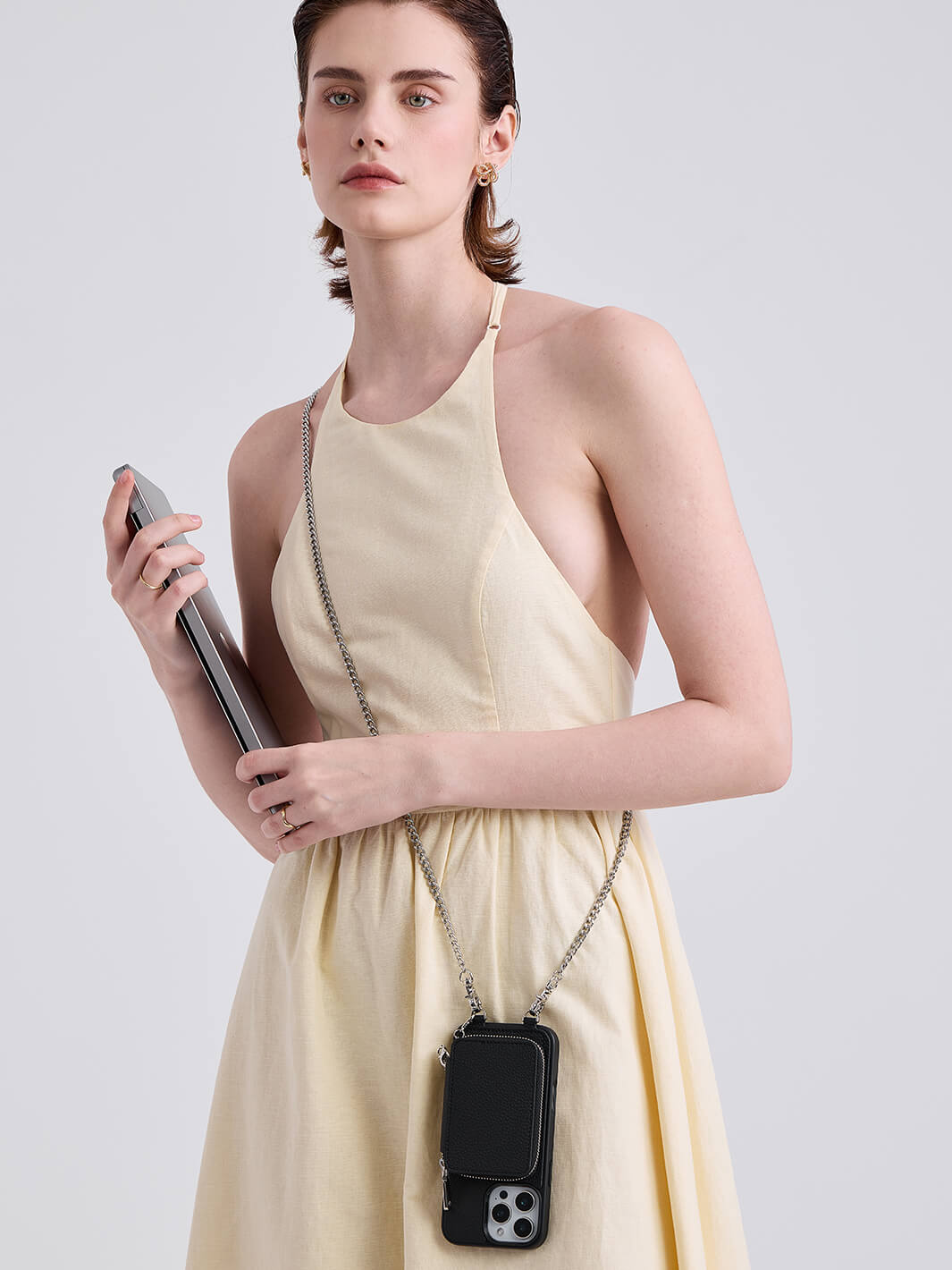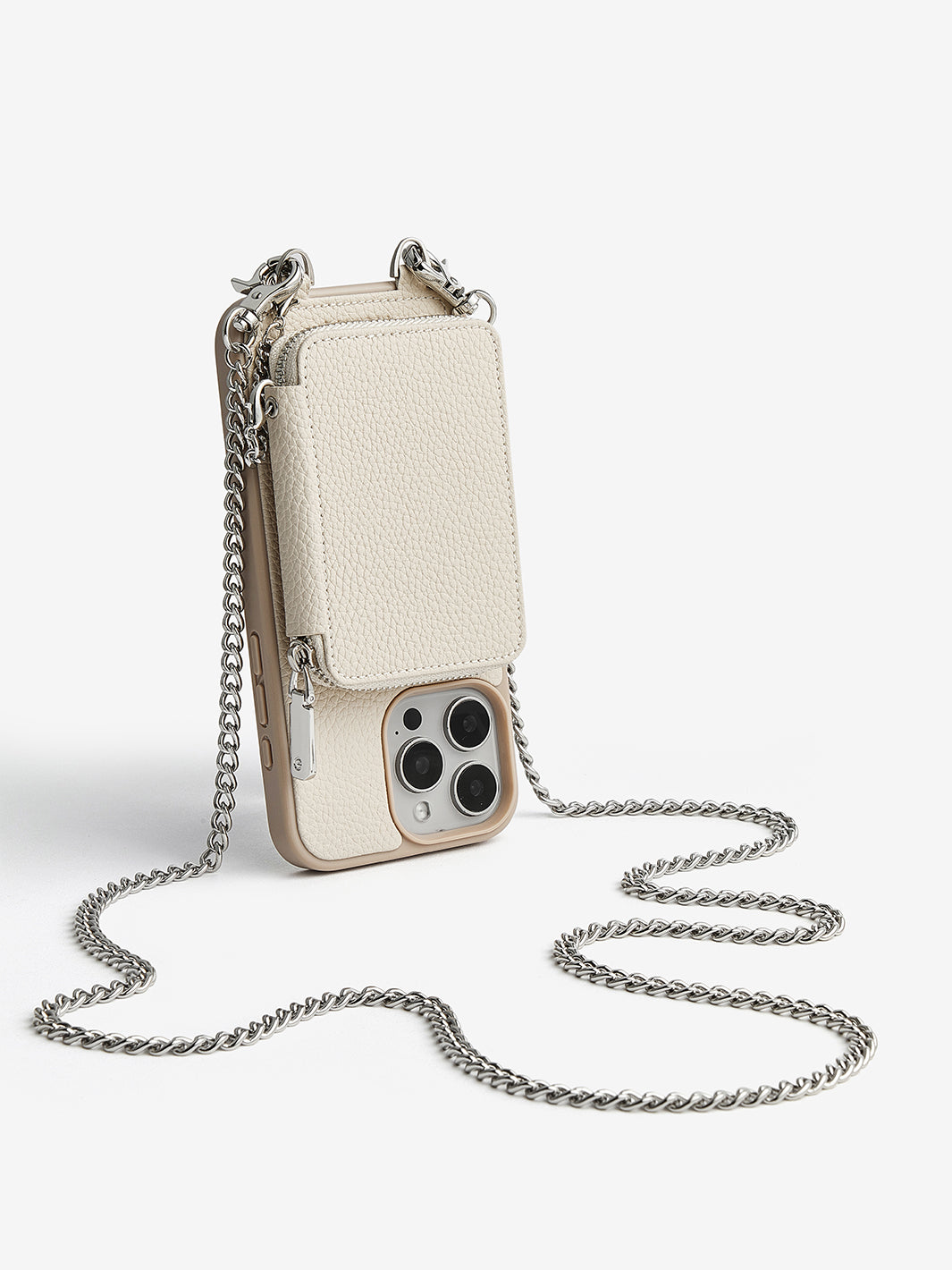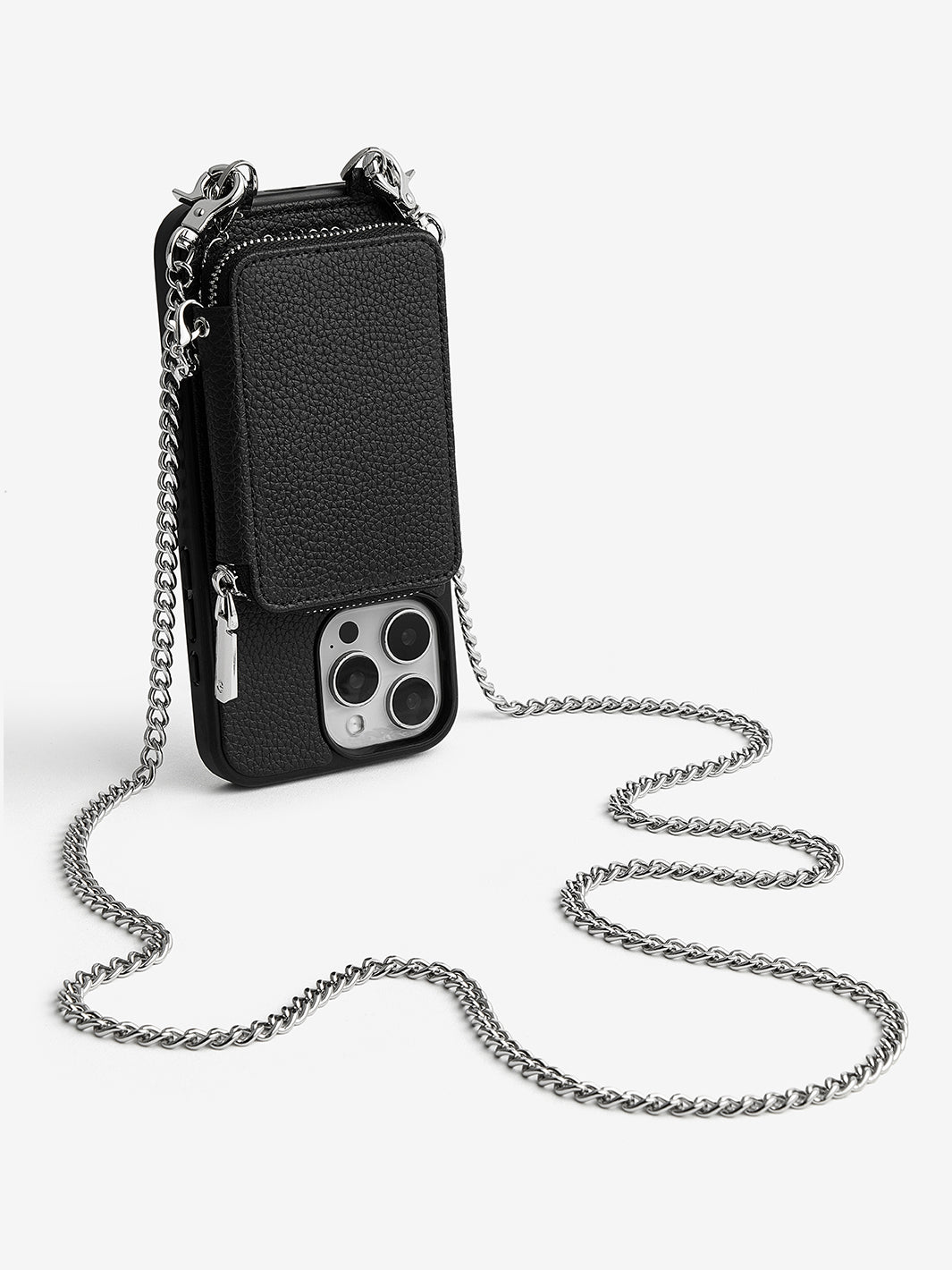 Elevate your phone with the Silver Luster Selection! This protective MagSafe phone case features an attachable wallet and a stylish crossbody chain, making it the ultimate phone accessory. Perfect for your device, this leather phone case offers both practicality and elegance. Whether you’re out running errands or on a night out, this aesthetic phone case has you covered—literally!