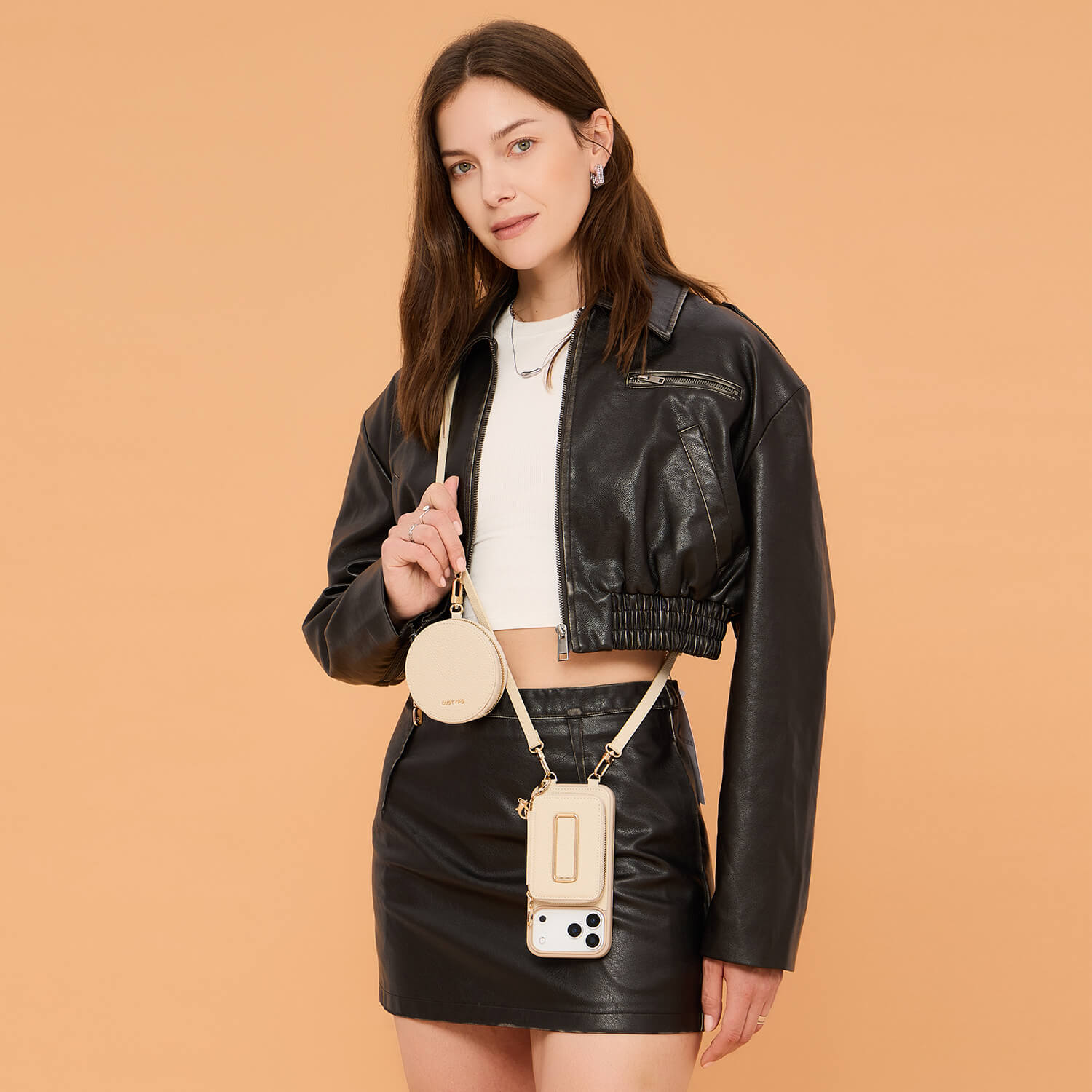 Original Design Set- Detachable Wireless Charging Crossbody Square Stand Wallet Phone Case Round Pouch Set