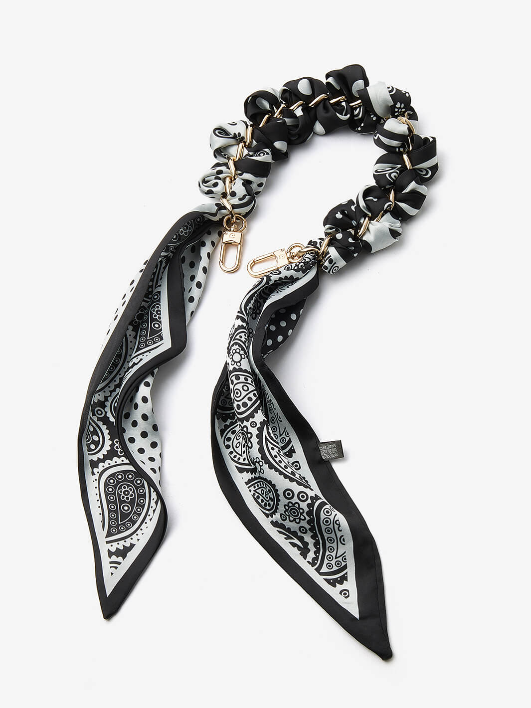 Elegant silk scarf phone case wrist strap. A unique combination of style and functionality. Let your phone be adorned with a touch of luxury while providing a convenient wrist strap for easy carrying. Be fashionable and practical with this must-have accessory.