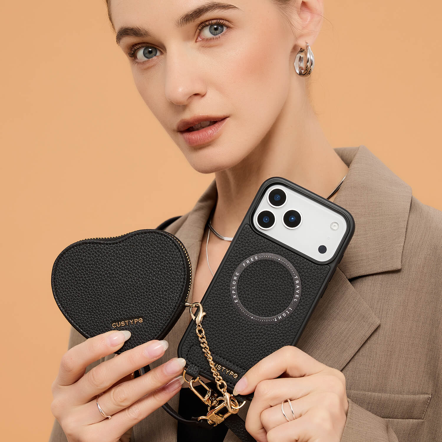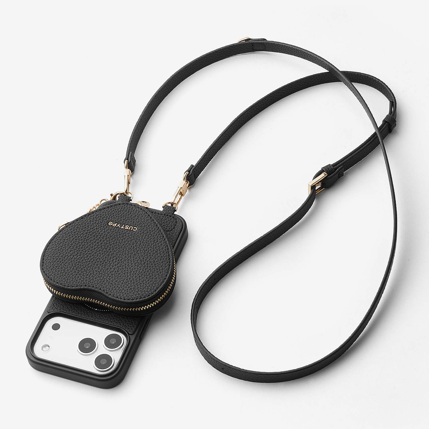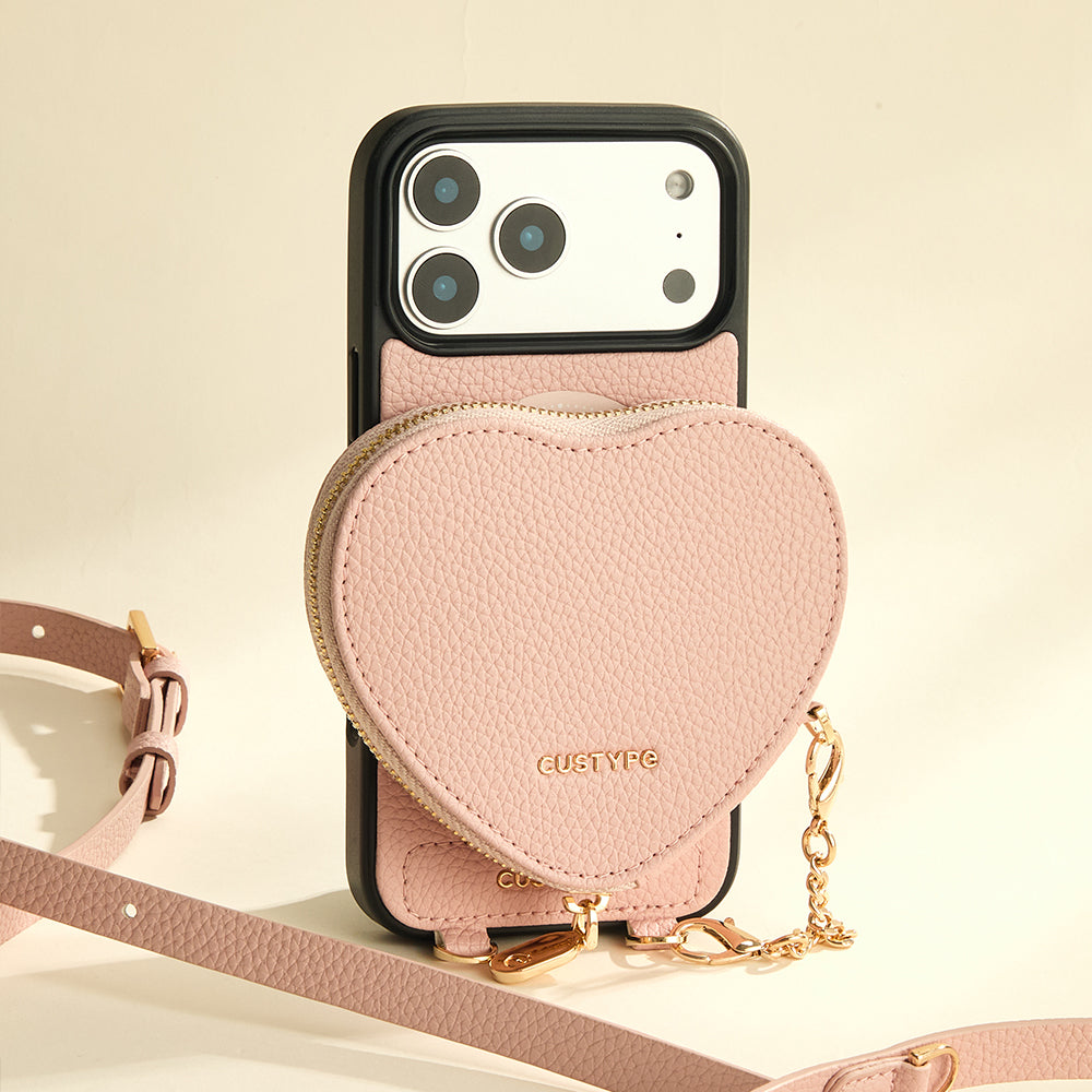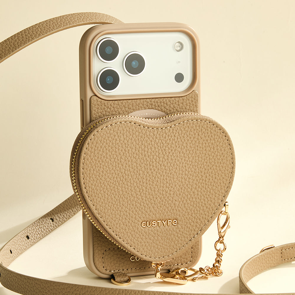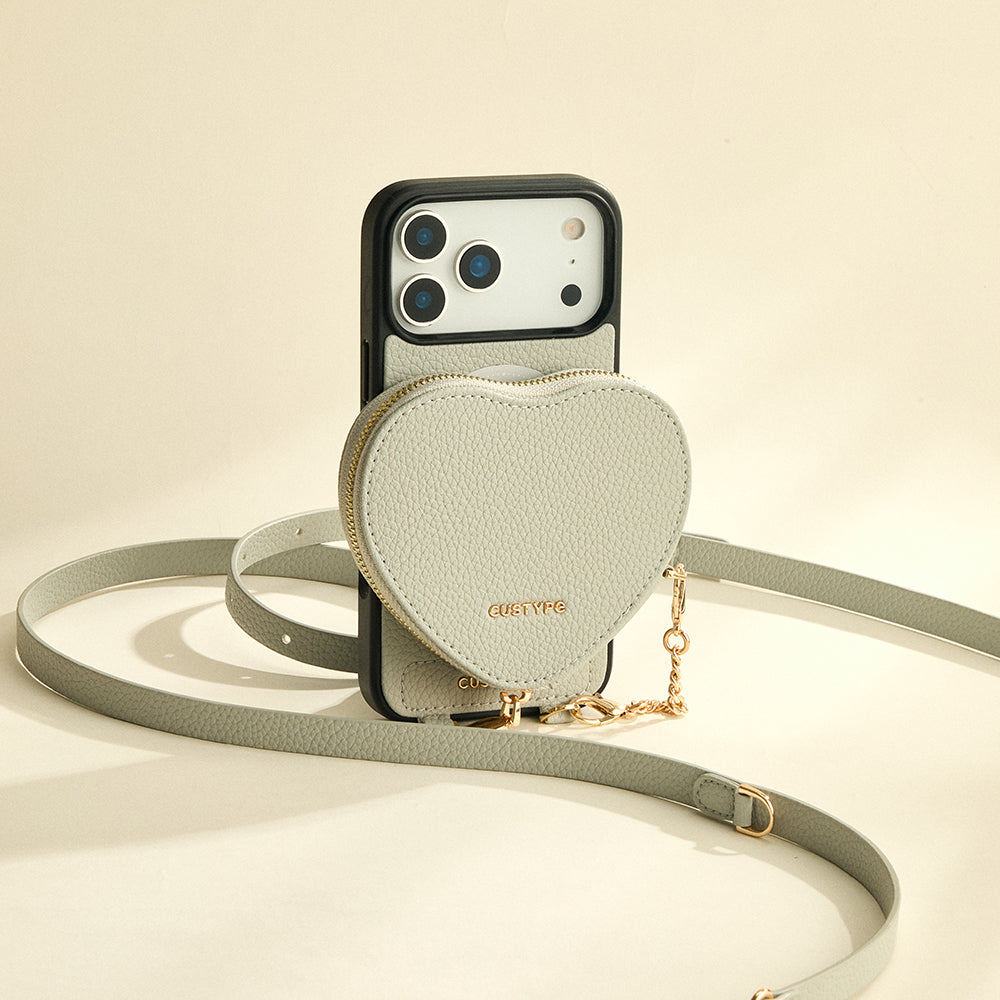 Discover the perfect blend of style and functionality with our iPhone Sling Case, featuring a cute heart pouch. The crossbody strap for apple iphone is designed for optimal comfort, offering a hands-free carrying option. And the cute heart pouch provides a secure space for your cards, keys, and lipstick, keeping your essentials organized and easily accessible. Designed for a hands-free experience, this wristlet option is perfect for on-the-go activities like shopping or dog walking. Crafted from high-quality vegan leather and compatible with MagSafe wireless charging, it stands out as a phone accessory that fits seamlessly into your daily routine.