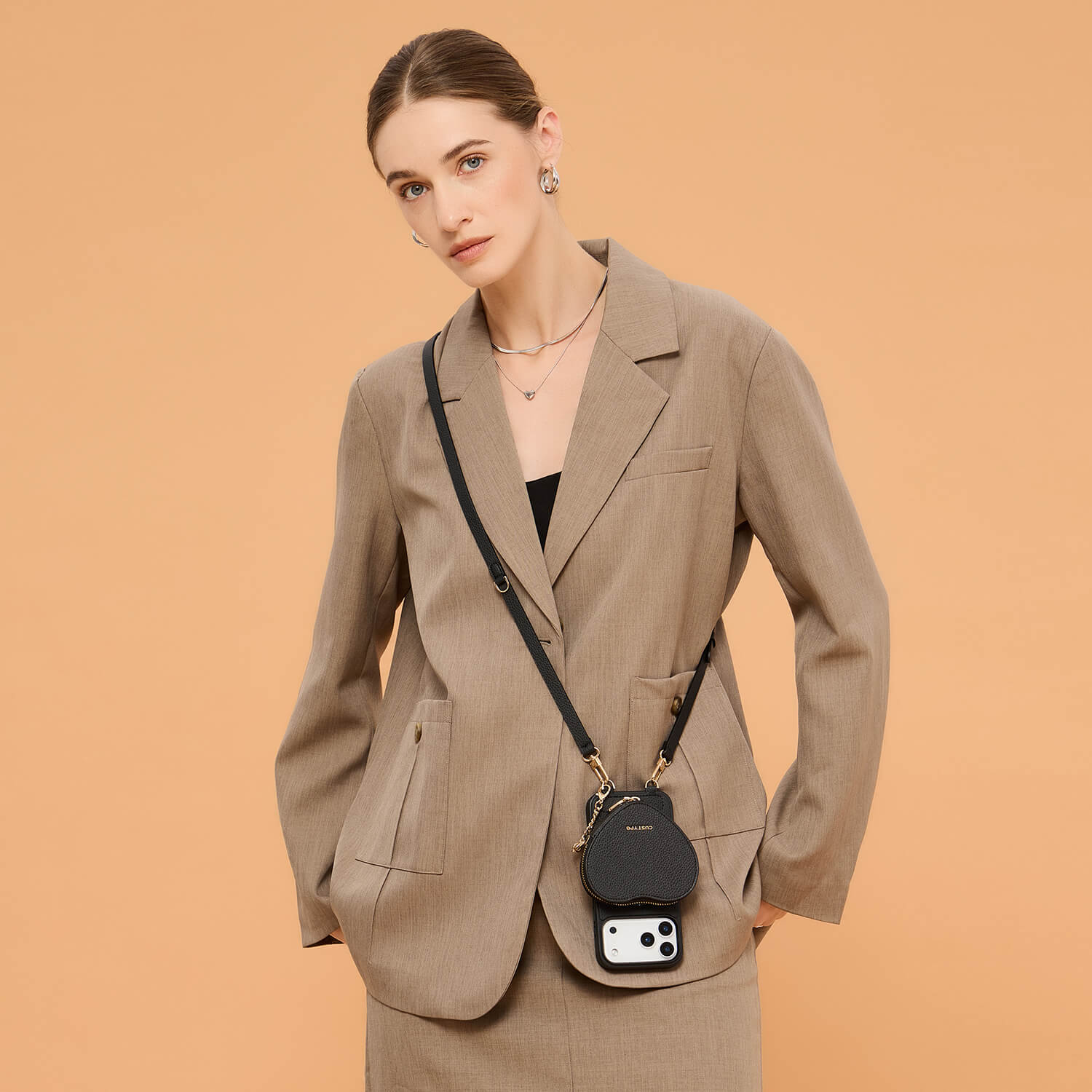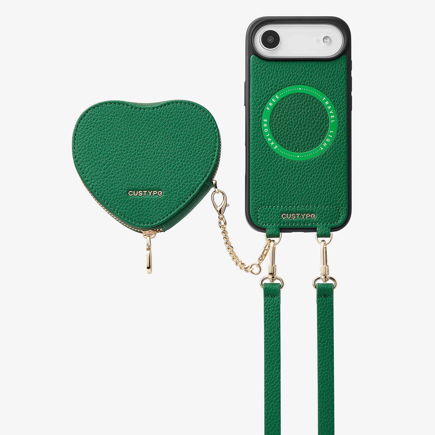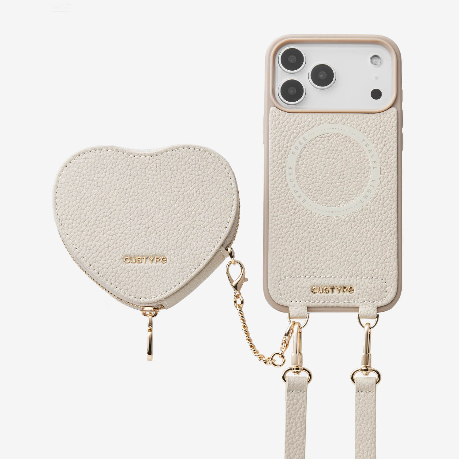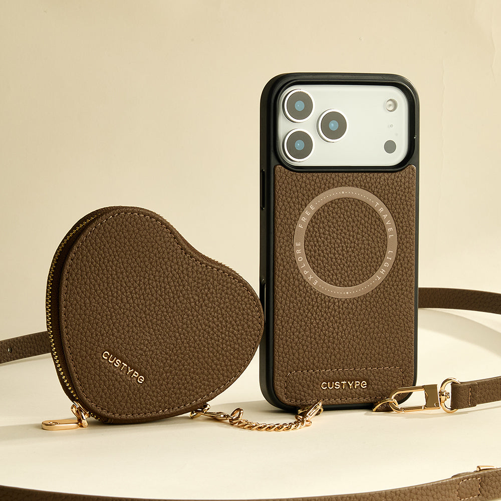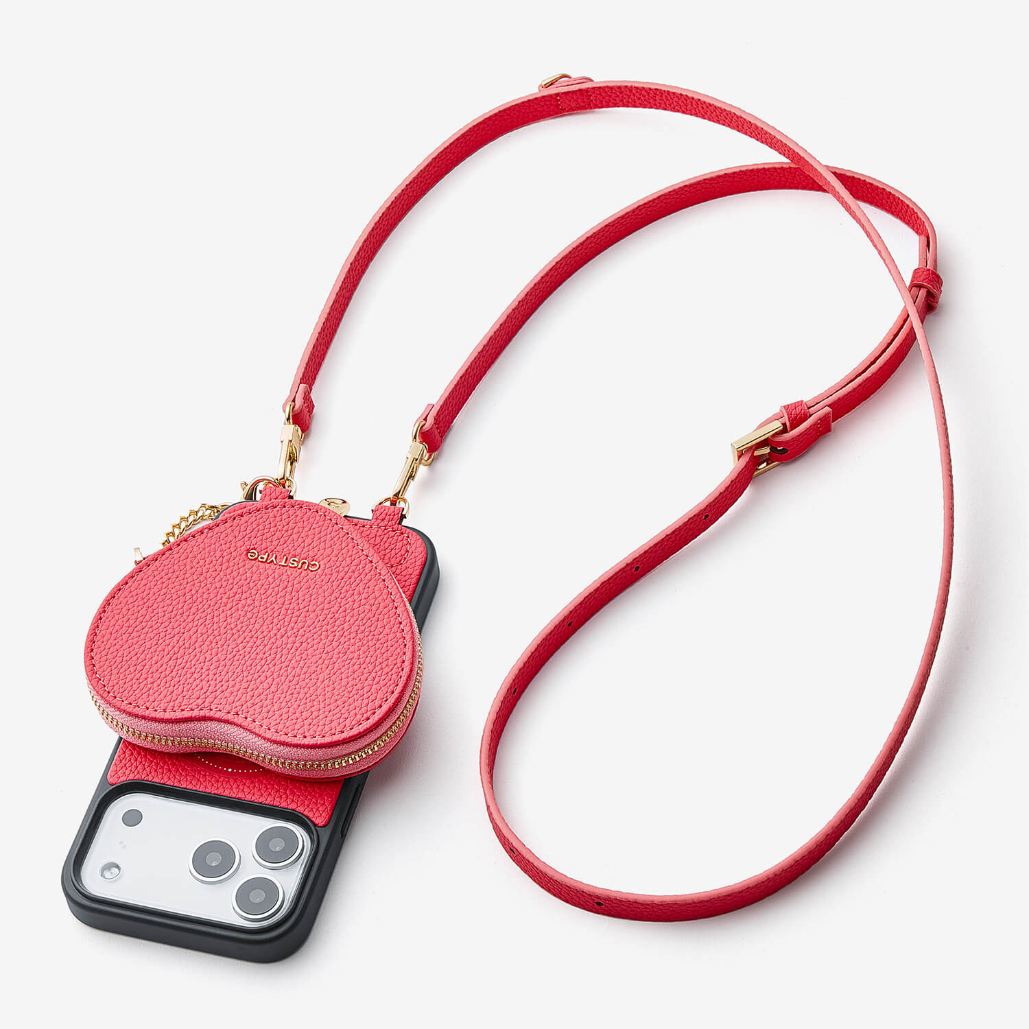 Discover the perfect blend of style and functionality with our iPhone Sling Case, featuring a cute heart pouch. The crossbody strap for apple iphone is designed for optimal comfort, offering a hands-free carrying option. And the cute heart pouch provides a secure space for your cards, keys, and lipstick, keeping your essentials organized and easily accessible. Designed for a hands-free experience, this wristlet option is perfect for on-the-go activities like shopping or dog walking. Crafted from high-quality vegan leather and compatible with MagSafe wireless charging, it stands out as a phone accessory that fits seamlessly into your daily routine.
