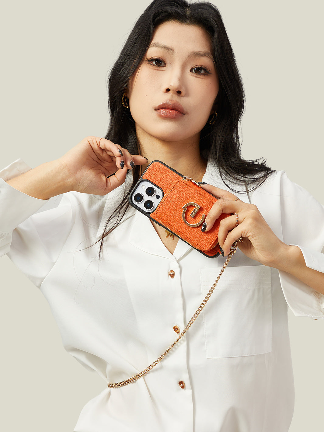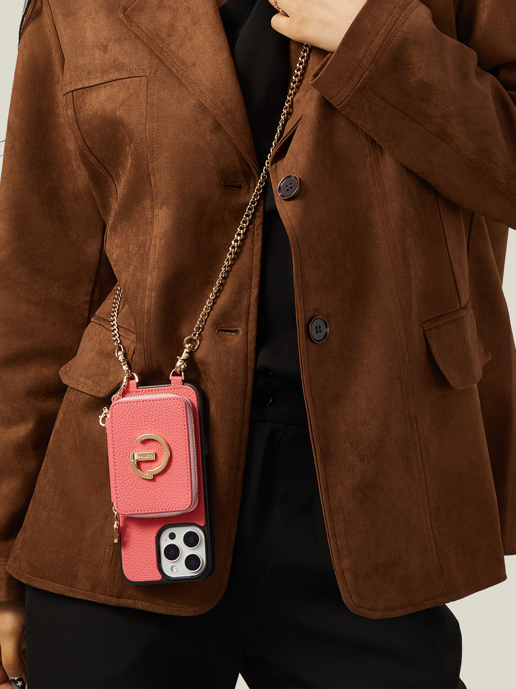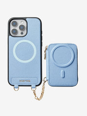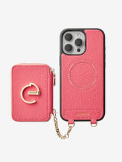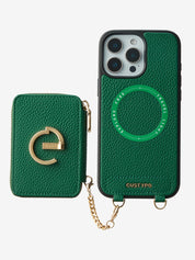This iPhone magnetic leather wallet case is a blend of style and practicality. Made from premium leather, it's durable and luxurious. The metal chain offers an elegant and convenient way to carry. The wallet, with multiple card slots, is detachable by magnetic suction. Notably, the phone case itself supports wireless charging. This design ensures both functionality for storing items and hassle - free charging for your iPhone.