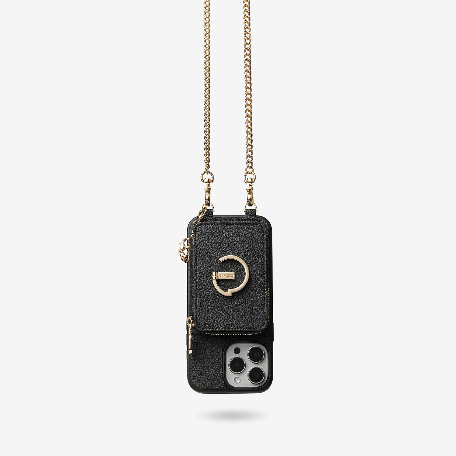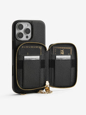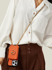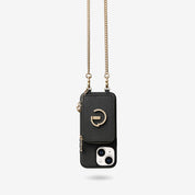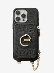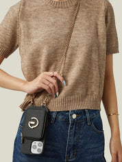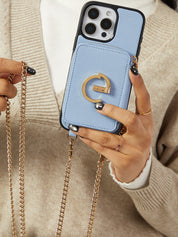 Classic Metal Chain- Strap Magnetic Leather Wallet Case with Stand for iPhone